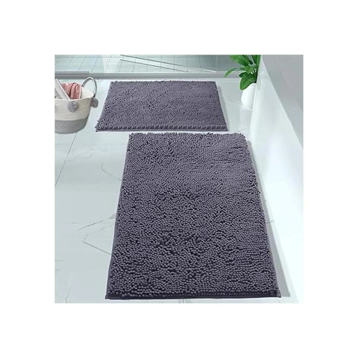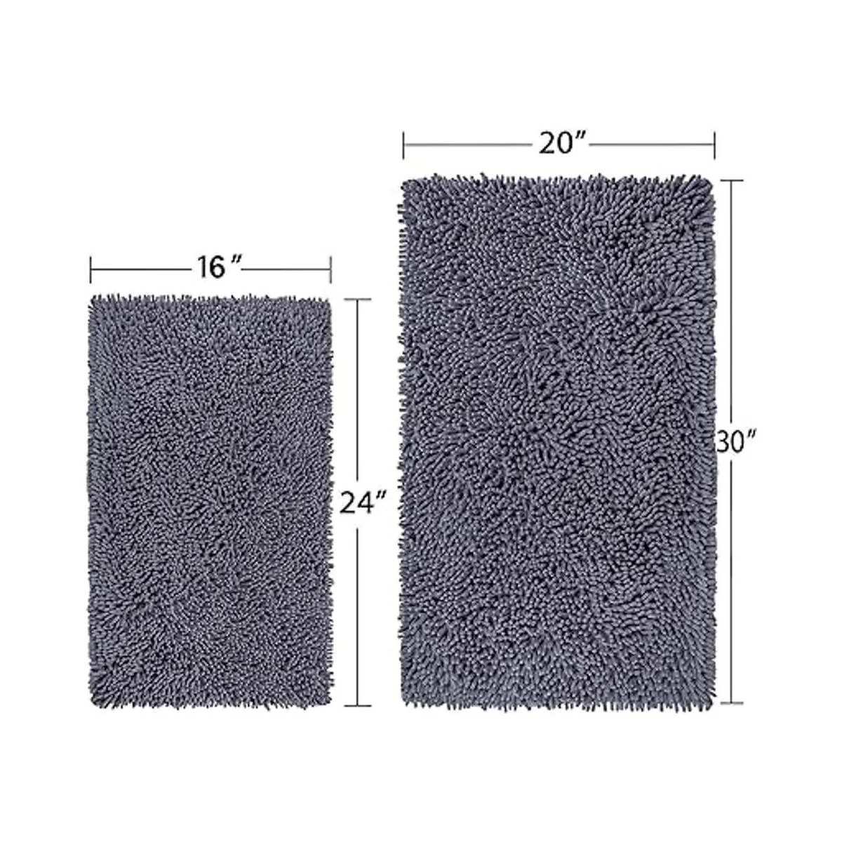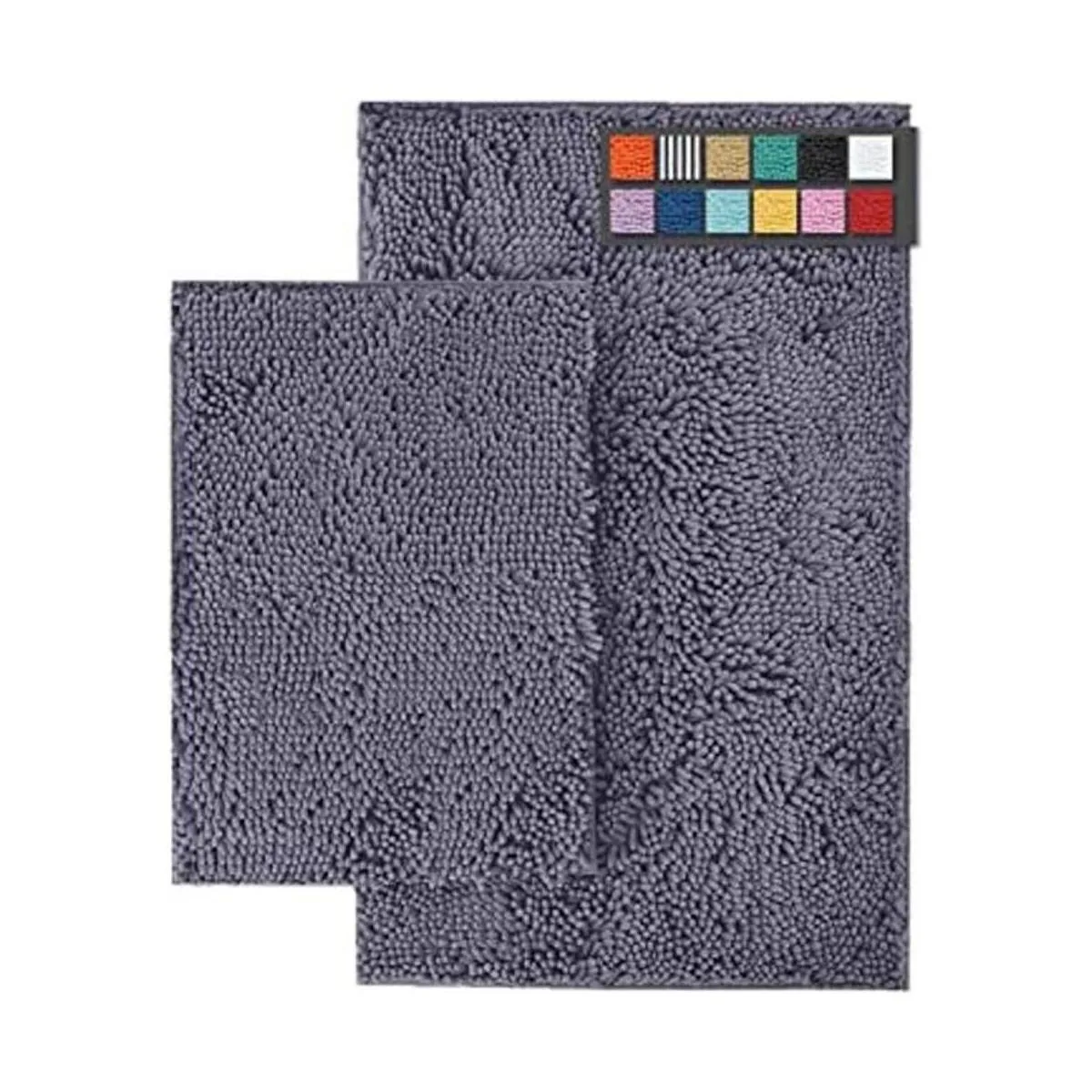 LuxUrux Juego de alfombras de baño de color gris superabsorbentes, juego de alfombras de baño de 2 piezas, alfombras de baño de felpa extra suave, material de microfibra de felpilla de 1 pulgada, (30 x 20 + 23 x 15, gris oscuro)