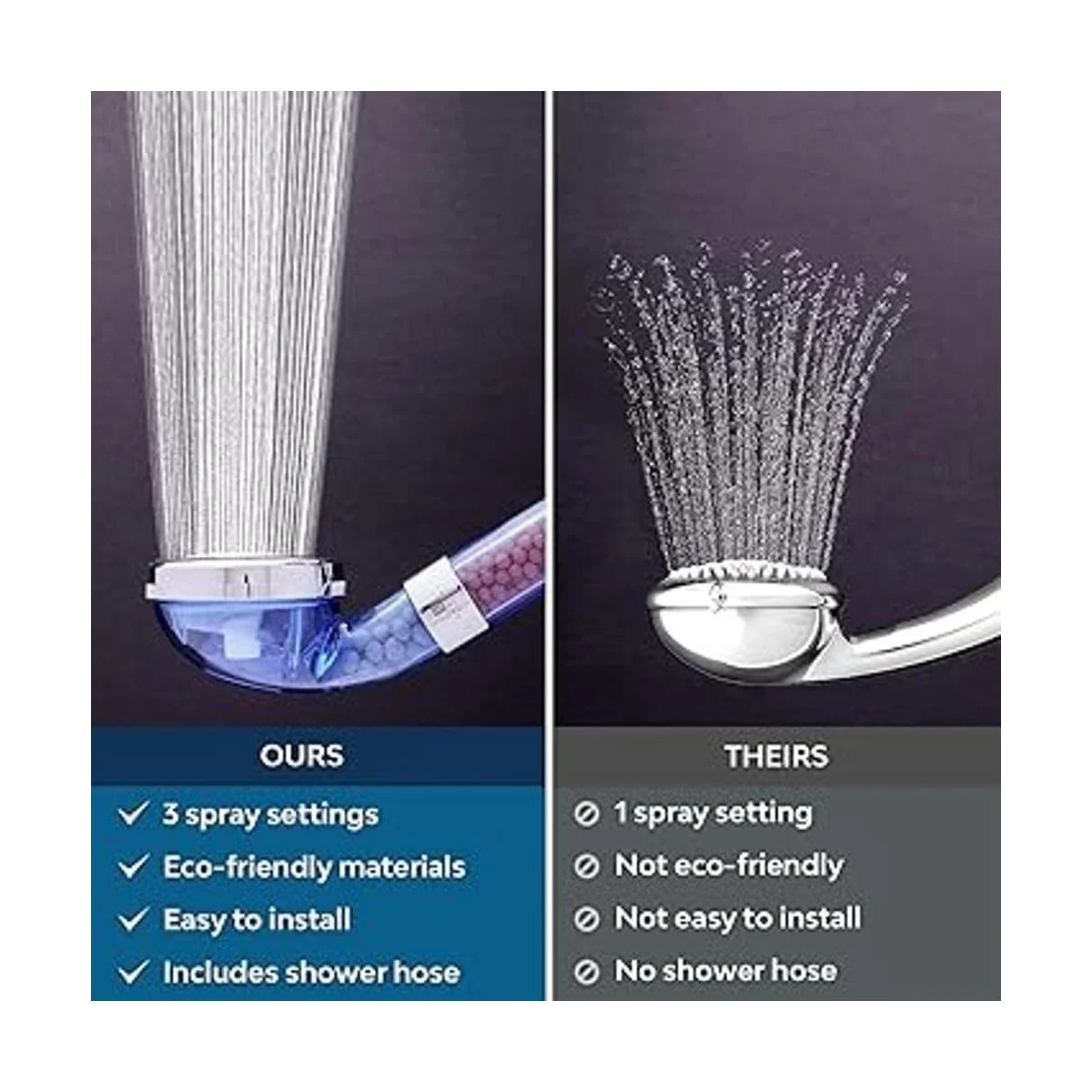 Hay un ajuste de pulverización para todos: este cabezal de ducha de agua dura viene equipado con modos de pulverización de lluvia, masaje y chorro, por lo que hay un ajuste perfecto para todos en la casa; nuestros innovadores cabezales de ducha de mano están diseñados para aumentar la presión del agua y ahorrar agua hasta un 30