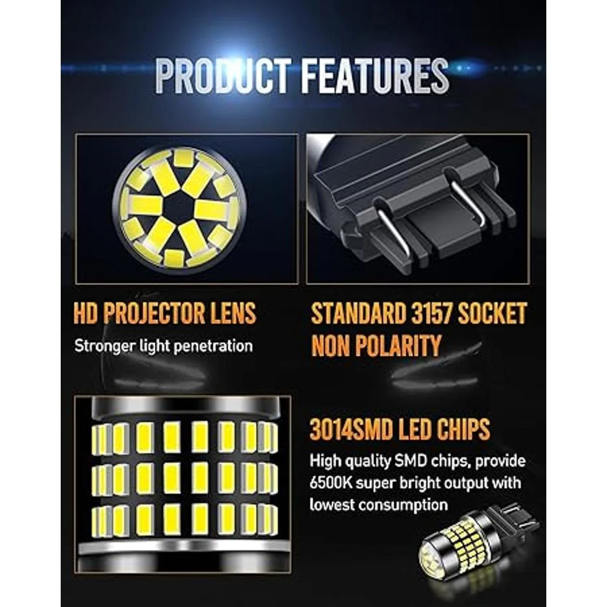 2pcs 3157 78pieces de alta potencia chipsets 3014 bombilla, voltaje de trabajo: 12 v24 v, tamaño: 1.9 x 0.9 x 0.8