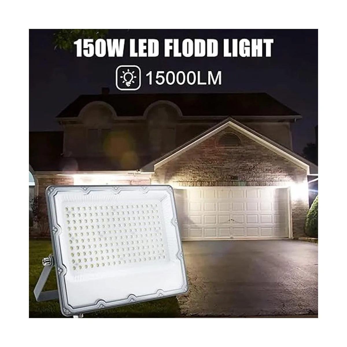 Luz de inundación LED brillante Básico 110 V, 150 W de potencia, hasta 15000 lm de brillo, lo que hace que esta luz de seguridad sea adecuada para cualquier lugar que necesite iluminarse. 180 cuentas de lámpara que te crean un espacio brillante o camino. Superficie granulada, alivia la iluminación intensa.