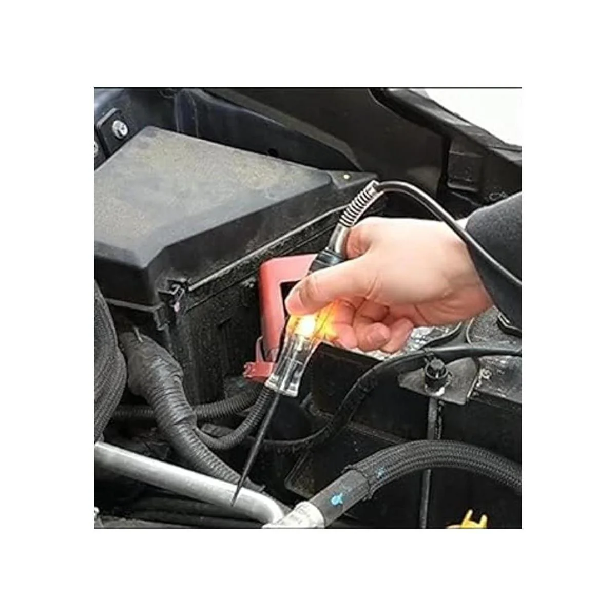 Luz de prueba automotriz, probador de circuito 6V12V24V, material de mango ABS, revestimiento de sonda de acero largo PU y clip de cocodrilo, para voltaje de continuidad, para sedán, SUV, RV, camión negro, 1 unidad