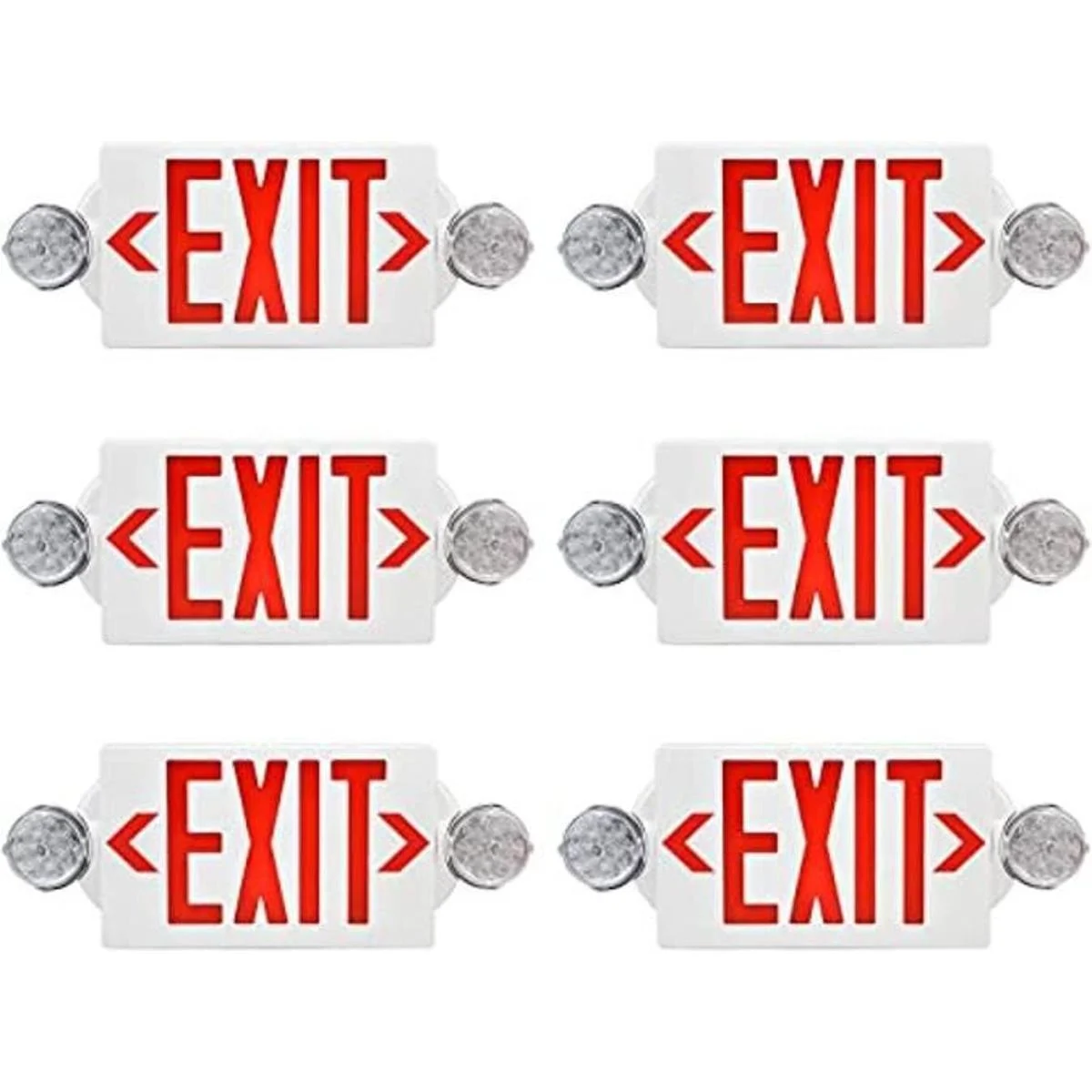 Luz de salida de emergencia AKT Lighting, luz de señal de salida de cabeza ajustable, dos LED, iluminación de salida de emergencia comercial combinado con batería de respaldo para negocios UL certificado rojo, 6 unidades