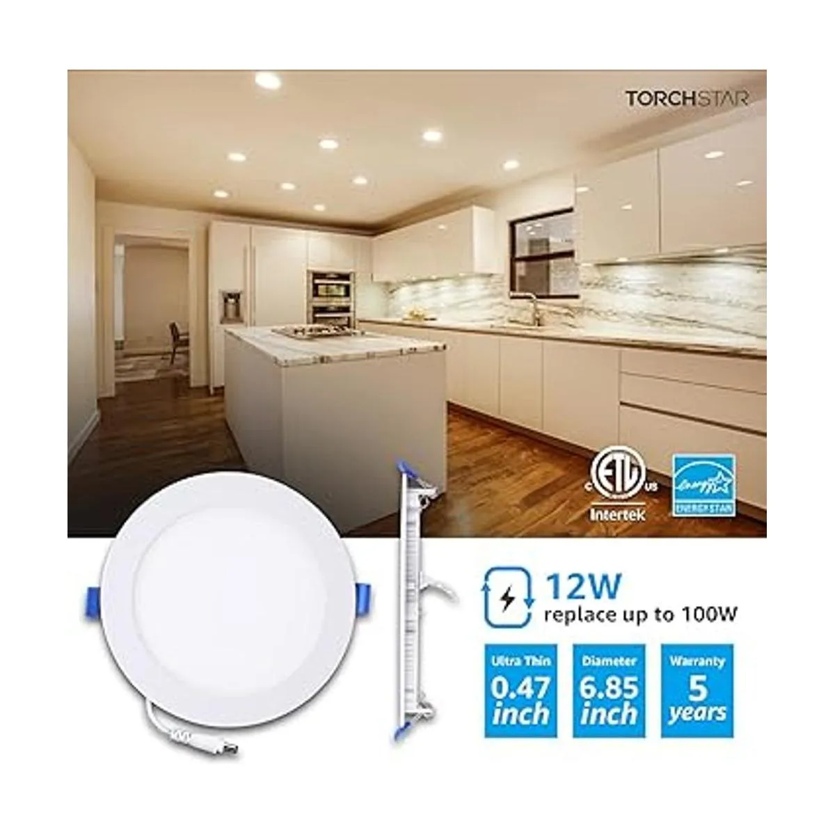 Alta eficiencia ligereza: certificación ENERGY STAR producto, nuestro 6 luz de techo blanca cálida sólo consume 12 W, proporcionando 900LM brillo que equivale a una foco halógena de 100 W, ahorra un 484 dólares en su vida de 50.000 horas.