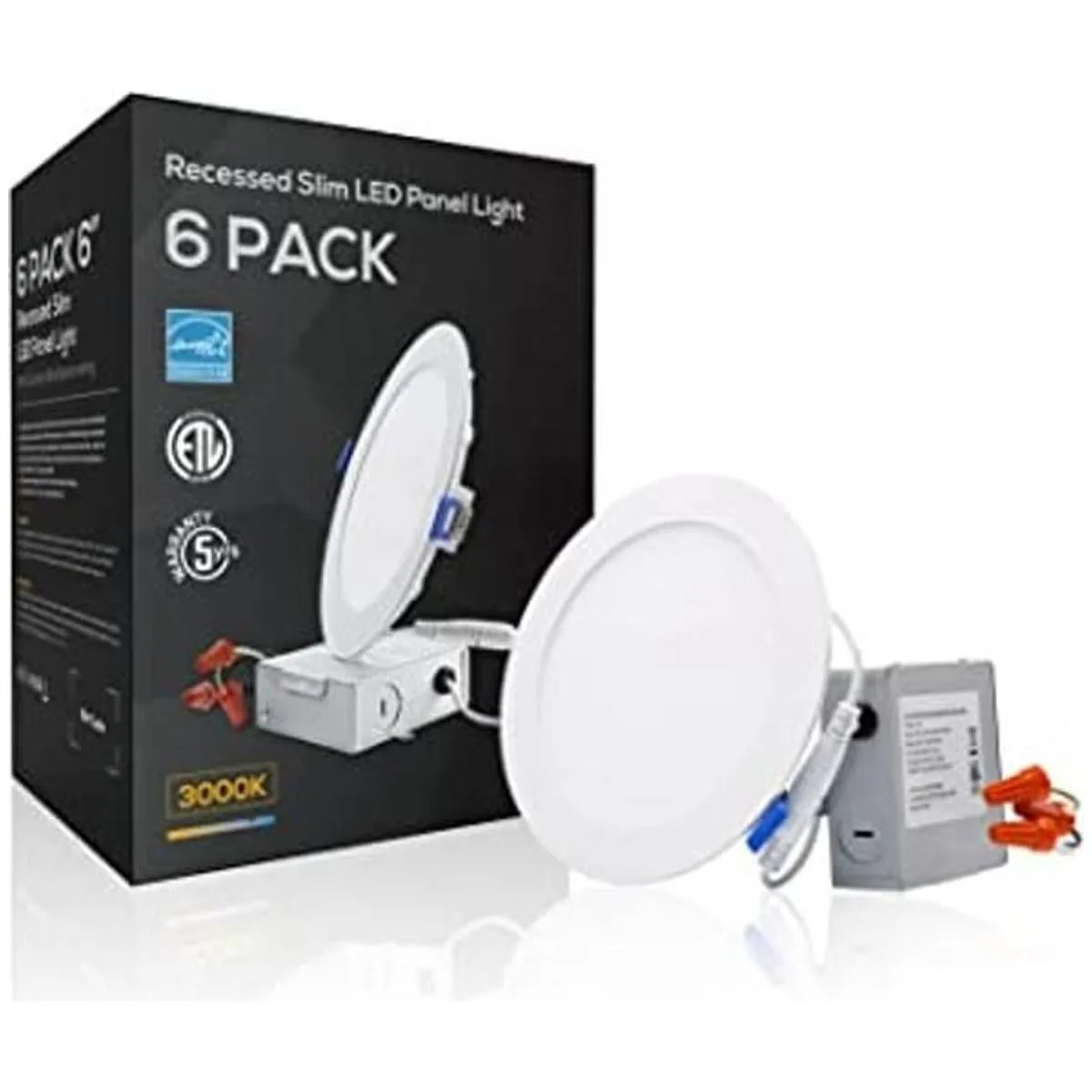 Luz de techo con caja de derivación 12 W 6, ultra delgada, intensidad regulable, hermético, 900 lm 100 W Equivalente a ETLlisted y certificación ENERGY STAR, 3000 K, blanco cálido, 6 unidades.
