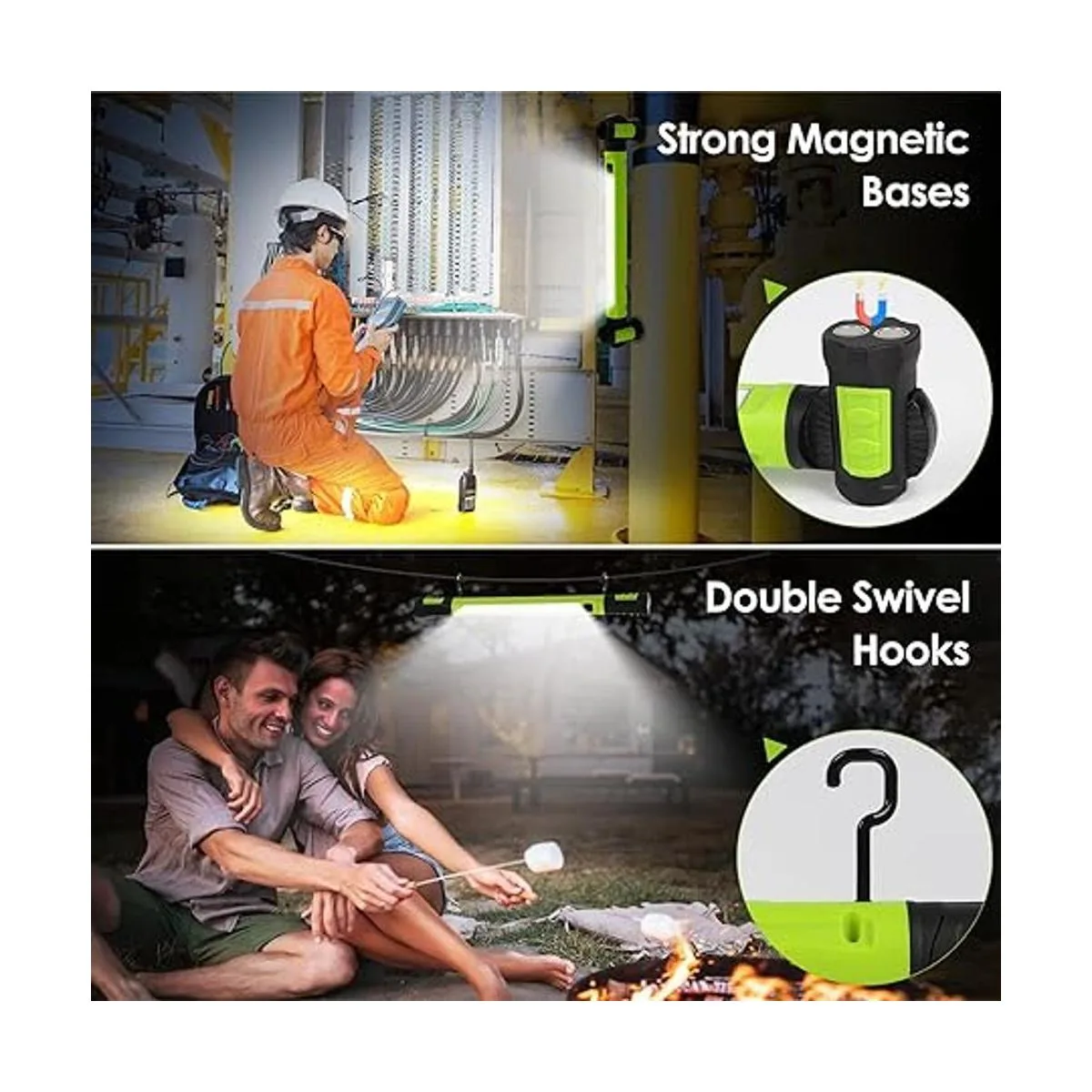 Soporte magnético versátil: hay 2 potentes imanes en cada extremo de la luz de trabajo magnética, excelente para fijar a la parte inferior del capó o cualquier superficie de metal magnético, haciendo que tu mano esté libre para terminar el trabajo. Las bases pueden girar 180 grados, también la parte central puede girar 360 grados para apuntar la luz donde se necesita, así como mantener firmemente su posición.