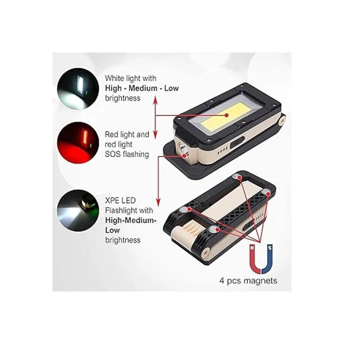 Luz de trabajo magnética LED recargable portátil linterna de trabajo Super brillo 180 giratorio plegable Snap luz de trabajo para reparación de coches emergencia camping escalada montaña