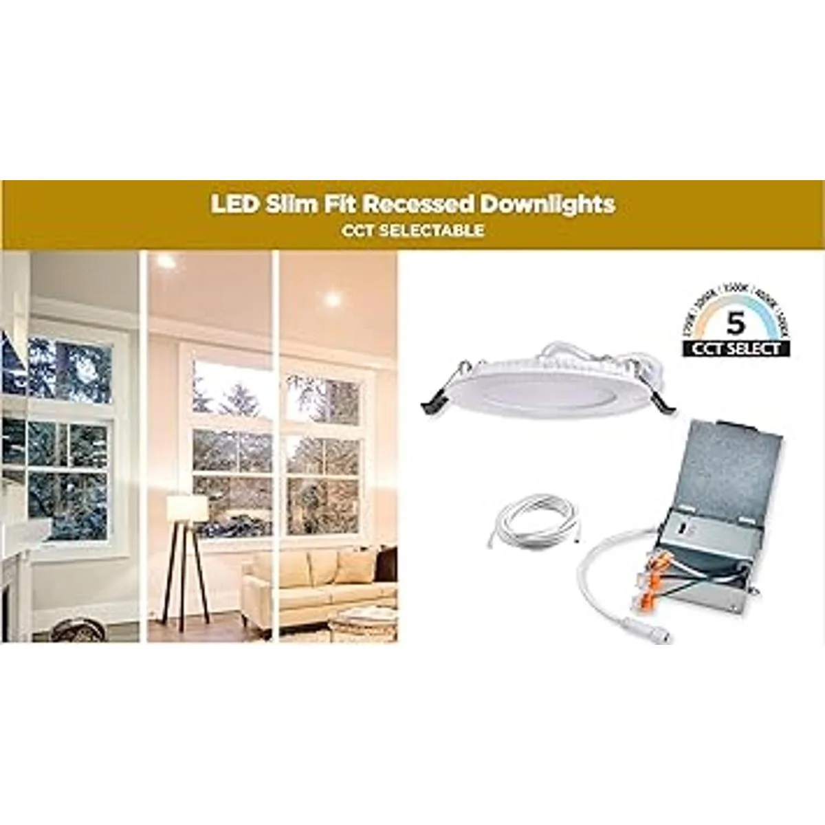 Luz descendente empotrable LED de ajuste delgado seleccionable CCT de 4 pulgadas, 9 W