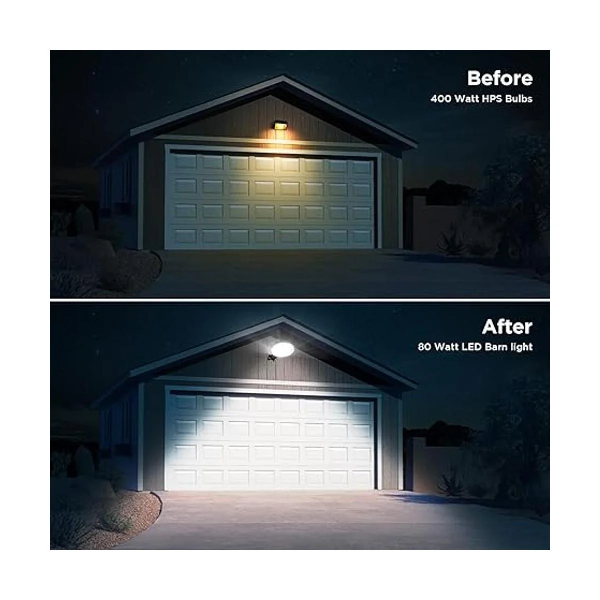 Luz LED de granero, iluminación exterior de ciervo del atardecer al amanecer con 80 W, 10000 lúmenes, 5000 K, luz de calle impermeable IP65 para granja, graneros, garaje, patio, almacén, iluminación de seguridad al aire libre