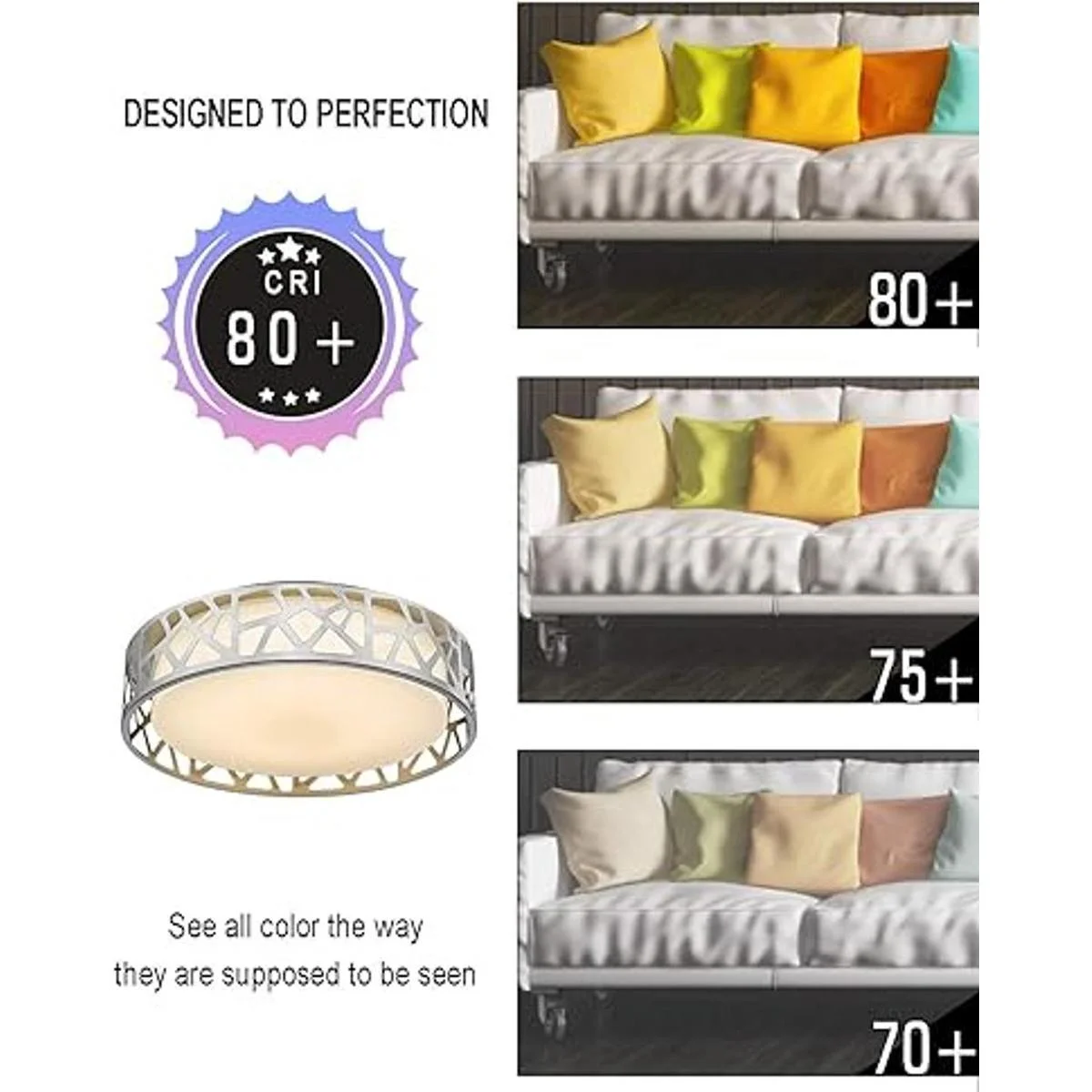 Clasificación visual CRI80: perfecto para minoristas o coleccionistas de arte Las luces de techo LED tienen una calificación CRI80, esto permite que la luz se ajuste más al color real y original del objeto, produciendo así una luz más precisa y vívida que otras alternativas de iluminación.