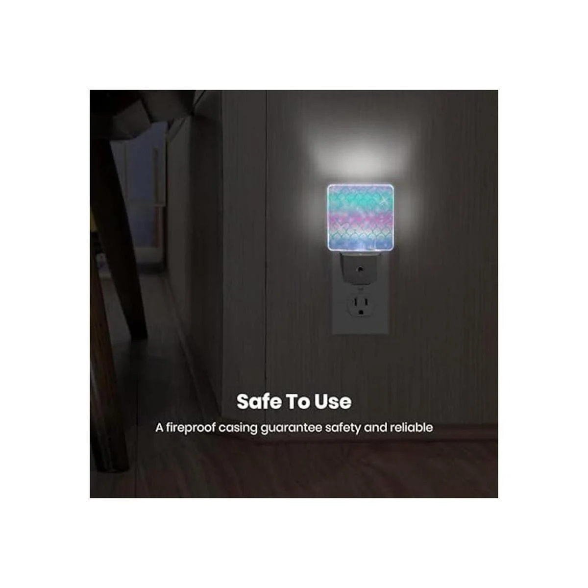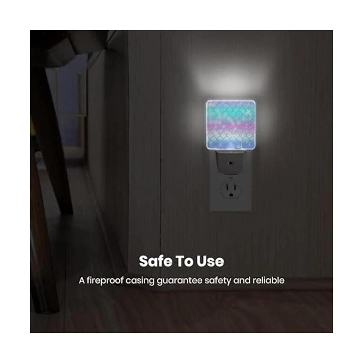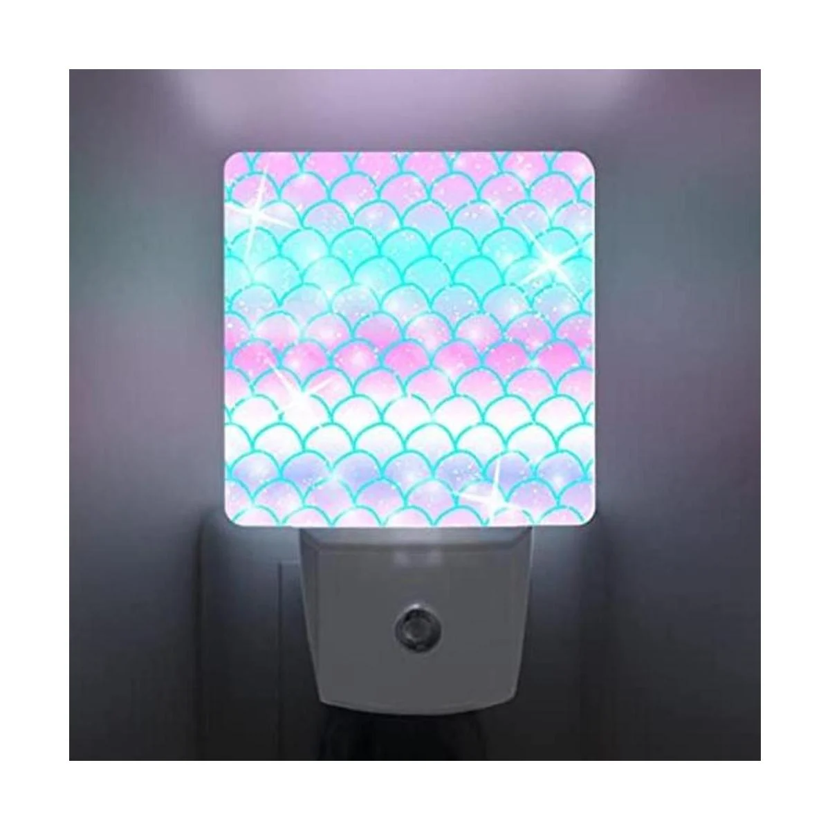 Luz nocturna enchufable con escamas de sirena rosa del atardecer al amanecer, luz nocturna LED blanca para dormitorio, baño, cocina, pasillo, escaleras, pasillo, decoración de eficiencia energética, lámpara de escritorio