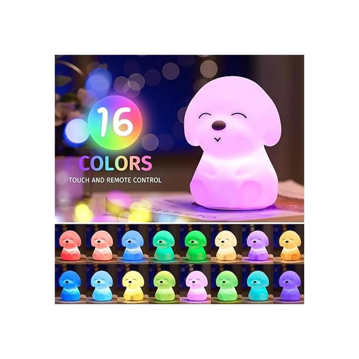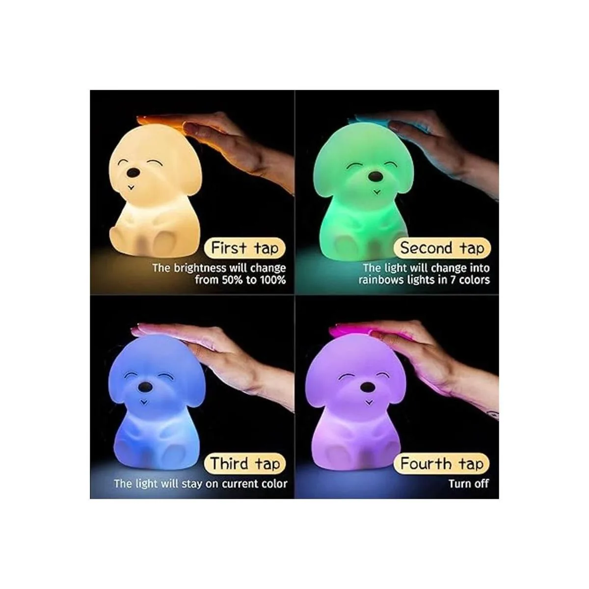 Luz nocturna para la habitación de los niños, luz nocturna como regalo para niñas bebés y niños pequeños, lindas luces nocturnas en forma de cachorro, lámparas de silicona apretujable, recargables vía USB, portátil, luces LED en forma de perro, que cambian de color.