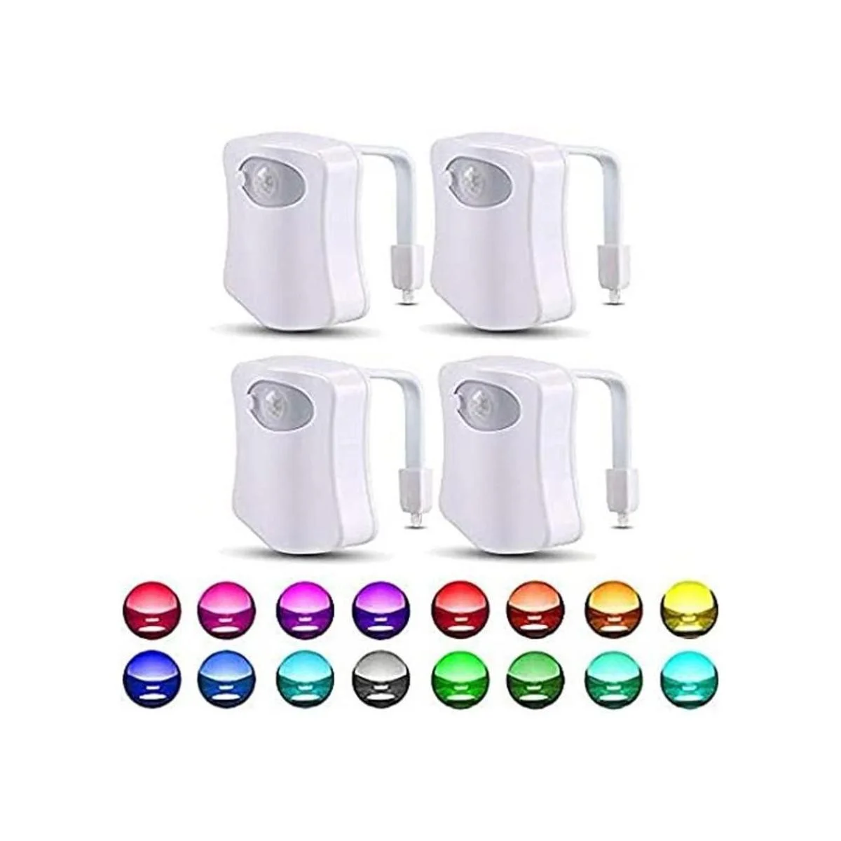 Luz nocturna Toliet que cambia de color, sensor de movimiento, luz LED multicolor para inodoro, luz LED activada por movimiento, luz de baño, lámpara UV para inodoro, luz nocturna, luz inteligente, lámpara de noche para inodoro 16 4 piezas