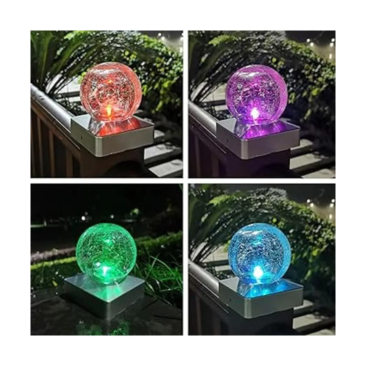 Luz de tapa de poste: 1 LED que cambia de color en cada luz de poste con un atractivo diseño de vidrio agrietado, hace que tu hogar se separe. Todas las luces solares están hechas de paneles solares de alta eficiencia y cristal de alta calidad.