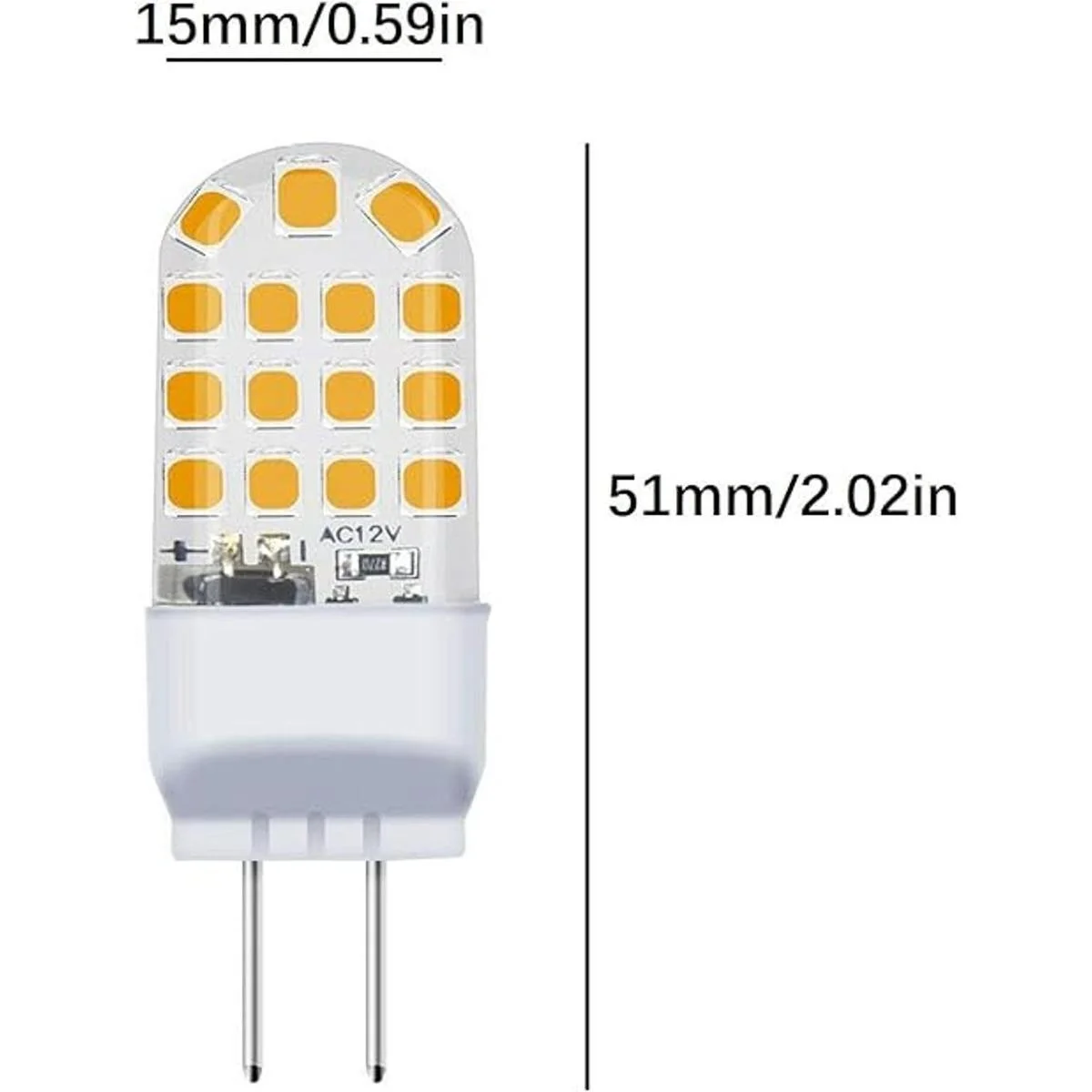 Alta calidad: bombillas LED G6.35 hechas de gel de sílice de alta calidad, menor consumo y mayor brillo. 400 lúmenes, ángulo de haz de 360, voltaje: 12 voltios no 120 V de entrada, luz blanca de día 6000 K, no regulable.