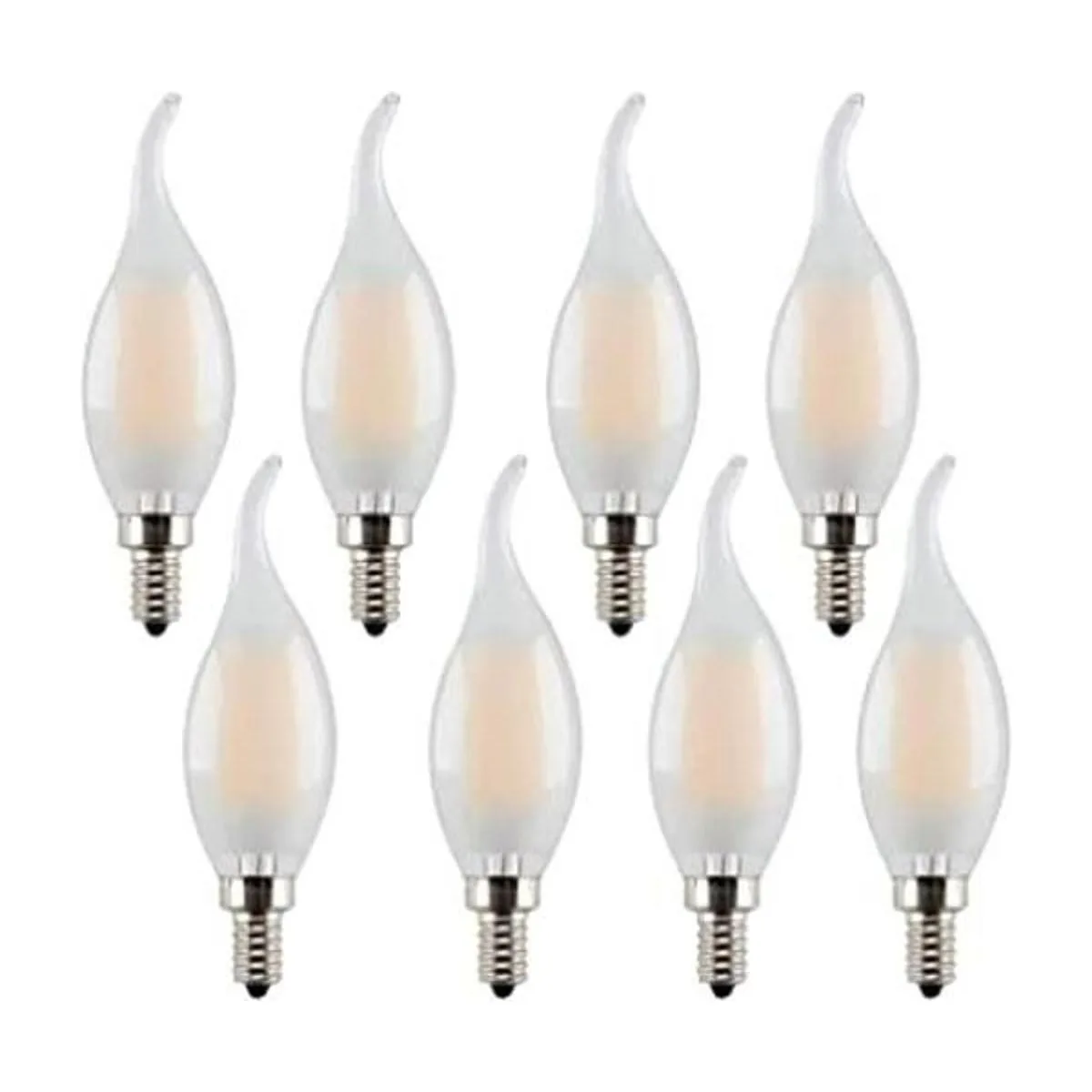 Lxcom Lighting Bombilla LED C35 para candelabro de 4 W, filamento regulable, bombilla LED equivalente a 40 W, base E12, bombillas LED de vela C35, vidrio esmerilado, forma de llama, punta doblada, color blanco suave, 2700 K, paquete de 8