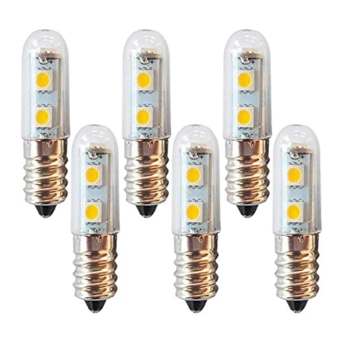 Lxcom Lighting E14 Bombilla LED para microondas, refrigerador, 1 W, 7 minitoles, 15 W, equivalente a incandescente, 110 V, blanco cálido, 3000 K, para nevera, horno, campana de coser, 6 unidades
