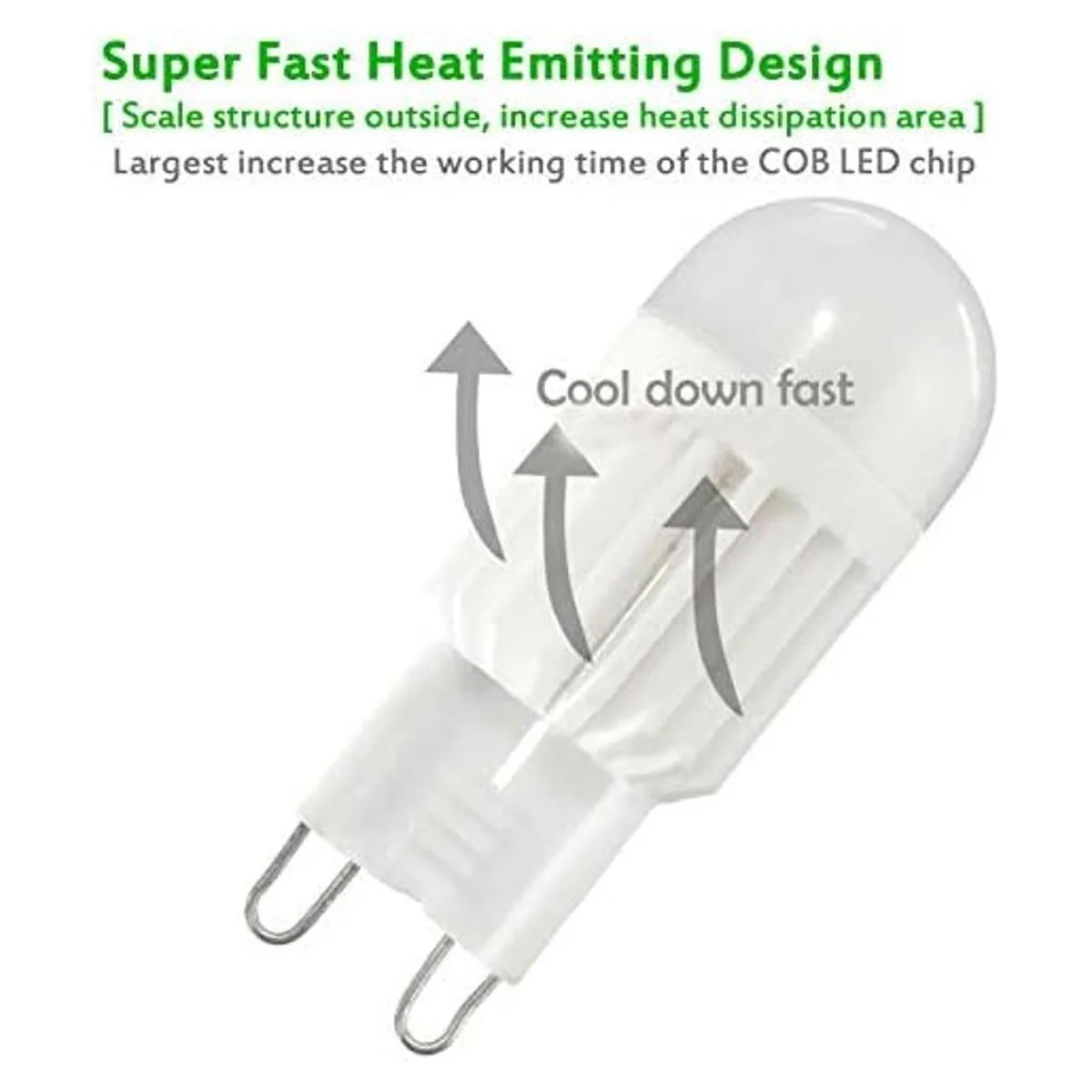 Alta calidad: bombilla LED G9 hecha de PC y cerámica, proporciona 250 300 lúmenes, blanco cálido 3000 K, 3 W, funciona de forma segura en AC 110 V, ángulo de haz de 360 grados, no regulable