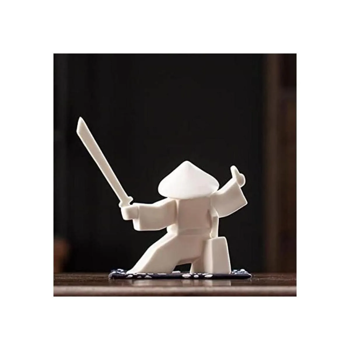 LYART Estatua de guerrero para mascotas, accesorios de adorno de té, bonita escultura de cerámica de té kung fu, regalo para decoración de sala de té, hogar, oficina, día de los niños, regalo para amantes del té blanco 2