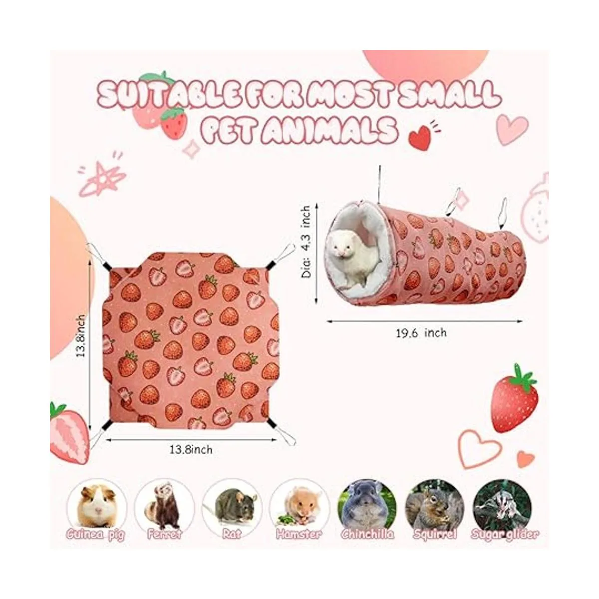 LYART Hamaca de hurón de rata de conejillo de indias y cama cálida, túnel de escondite para mascotas pequeñas, cueva, litera, hamaca de juguete para hámster, deslizador de azúcar, ardilla