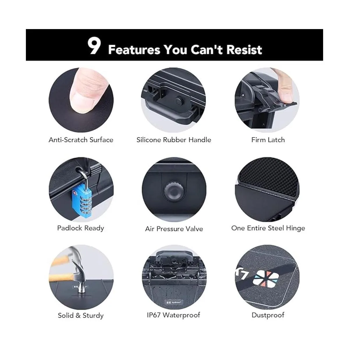 Lykus HC5110 Funda rígida grande impermeable con espuma, tamaño interior de 19.7 x 11.0 x 6.3 in, apto para pistola, equipo electrónico y más