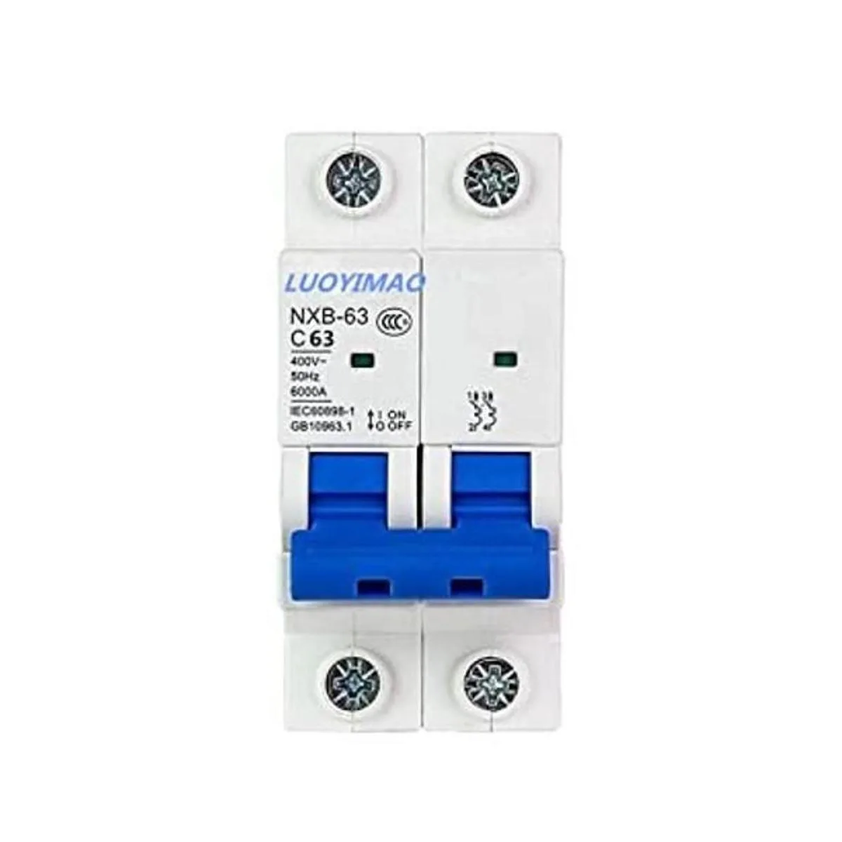 LYM Buena calidad 2 polos 20A32A63A 400V bajo voltaje interruptor de circuito miniatura DIN montaje en riel NXB63 C20C32C63 C6363A