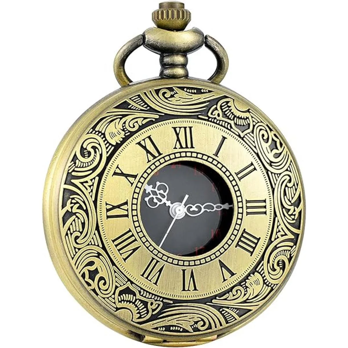 LYMFHCH Reloj de bolsillo vintage con escala de números romanos, relojes de bolsillo de cuarzo con cadena, regalos de cumpleaños, Día del Padre