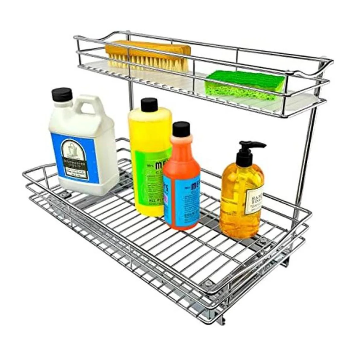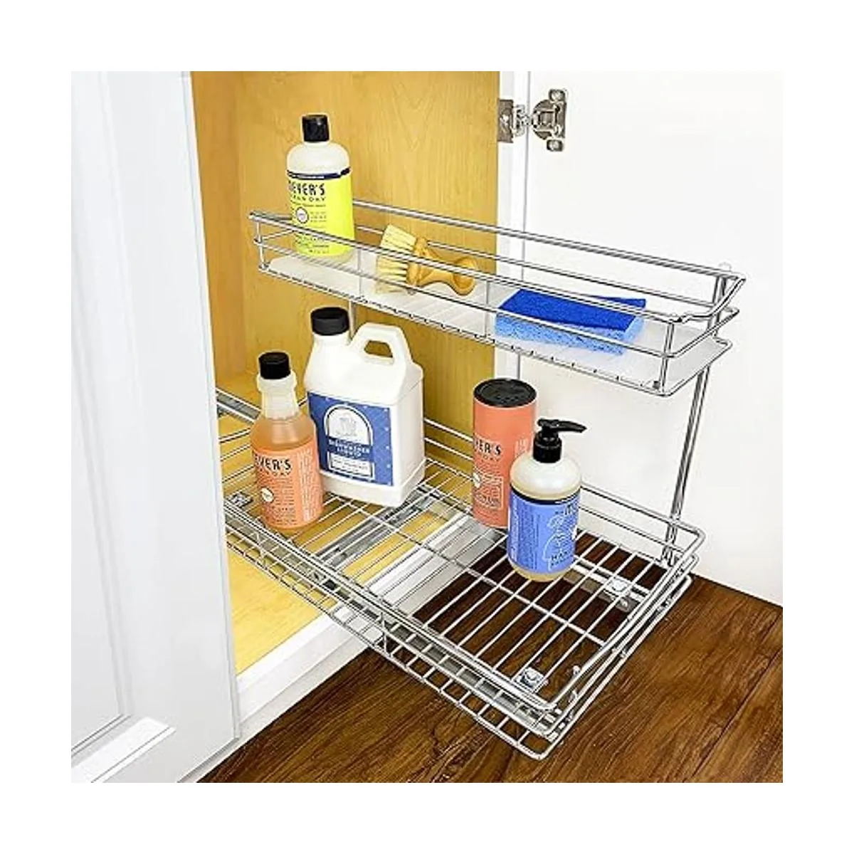 LYNK PROFESSIONAL Organizador de gabinete deslizante para debajo del fregadero, estante deslizante extraíble de dos niveles, 11.5 pulgadas de ancho x 18 pulgadas de profundidad, cromado