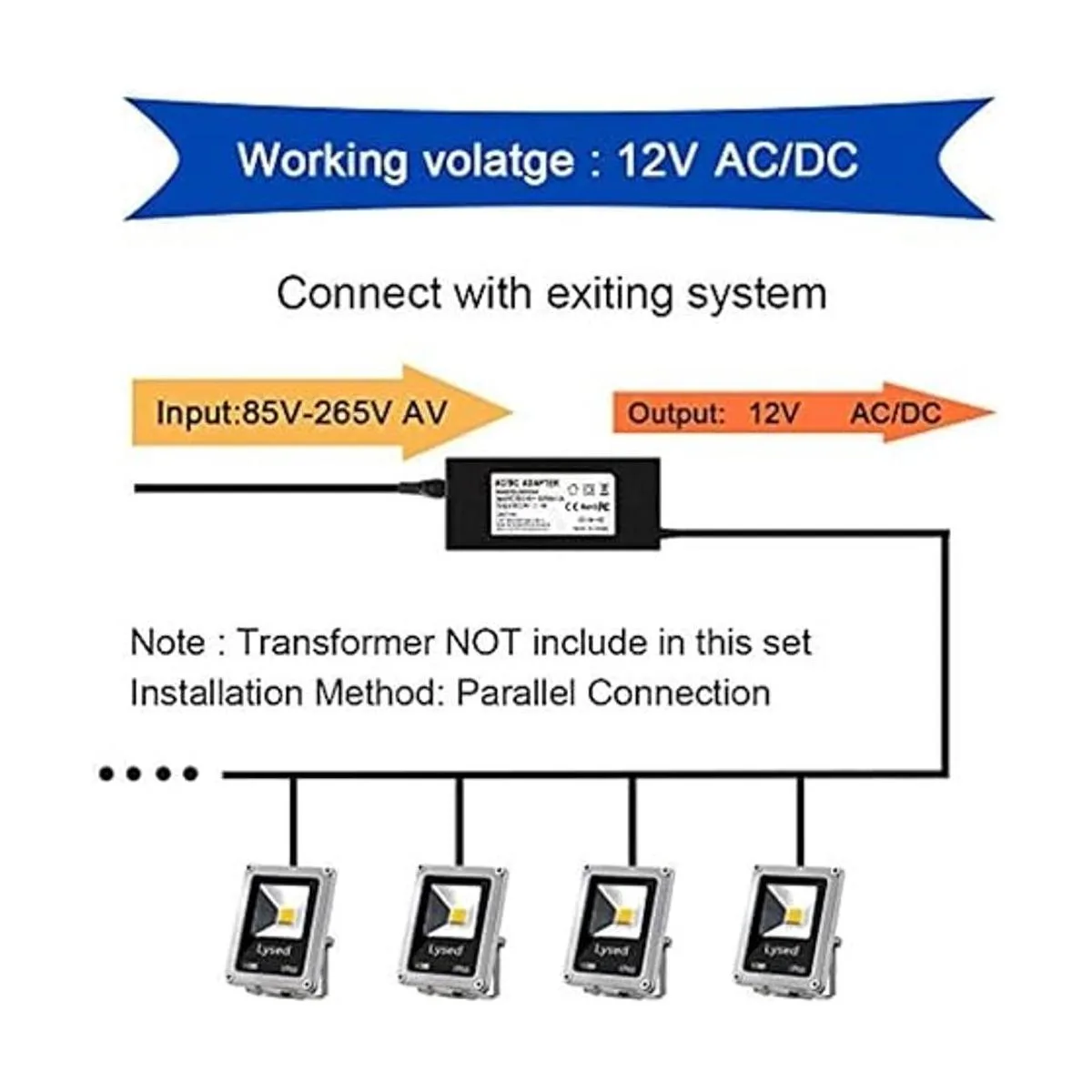 Brillo acogedor: blanco cálido de 3000 K que te proporciona un ambiente acogedor. Son brillantes y fáciles de ocultar por lo que están fuera del camino, el voltaje de entrada de las luces de jardín es de 12 V CA o CC, fácil de instalar y usar y seguro. Utiliza voltaje de 110 V, necesita transformador de 12 V.