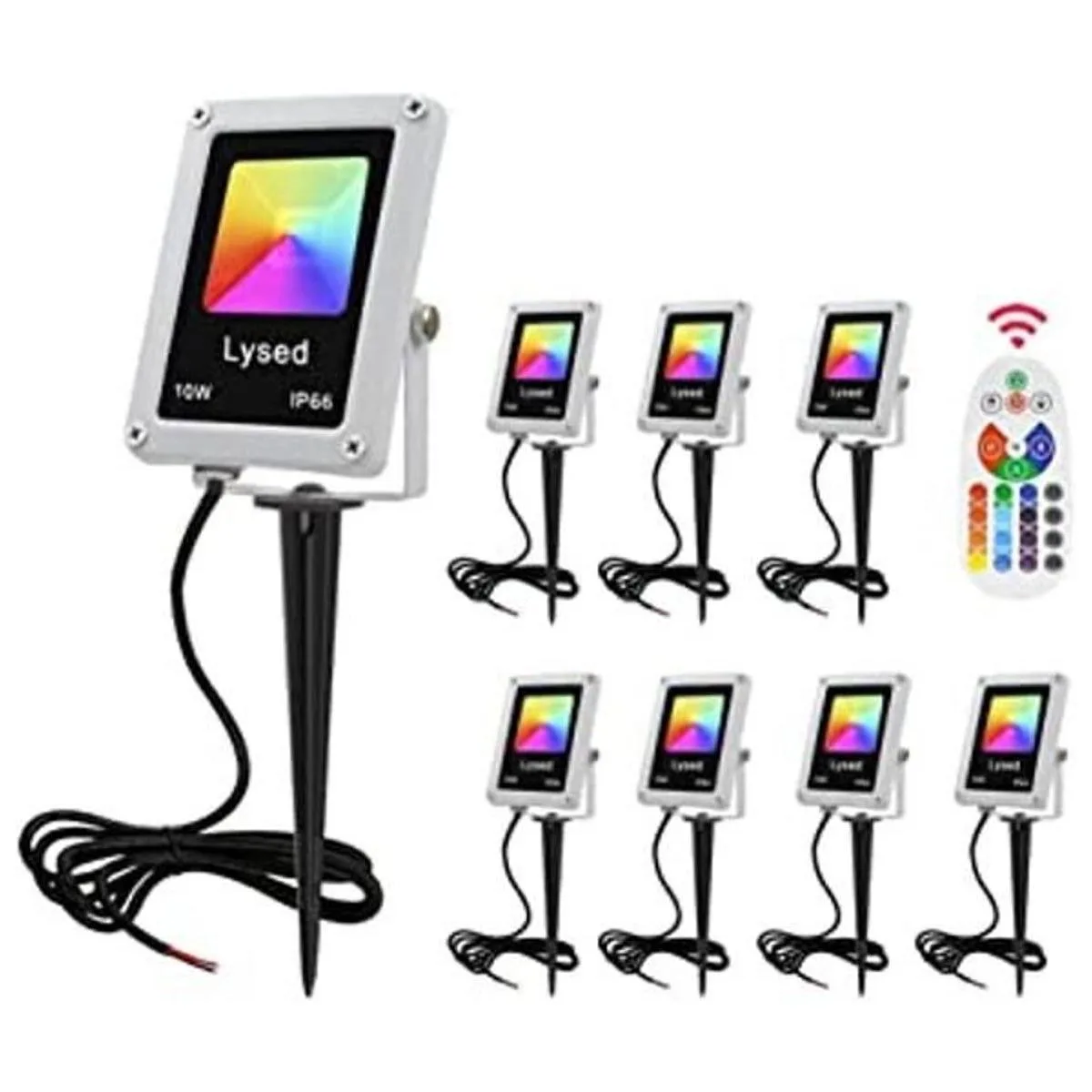 Lysed Luces de paisaje de color, 10 W de baja tensión 12 V RGB cambio de color al aire libre, iluminación LED de paisaje IP66, camino impermeable para Halloween, paisaje al aire libre, luces de árbol, 8 unidades