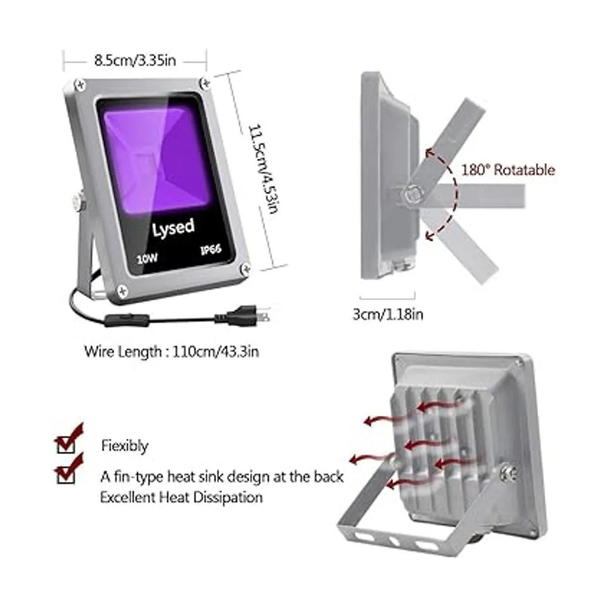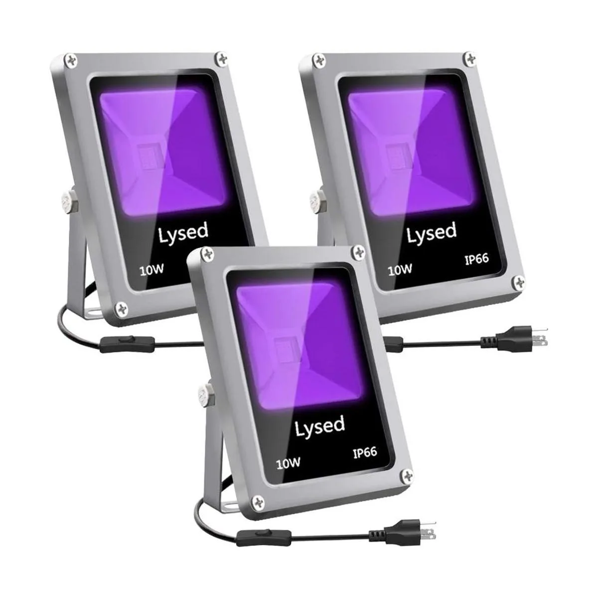 Lysed Luz negra de 10 W, luz de inundación LED UV de alta potencia con enchufe, IP66 85 V265 V CA para fiestas de baile, brilla en la oscuridad, iluminación de escenario, pintura corporal, póster fluorescente, brillo de neón paquete de 3