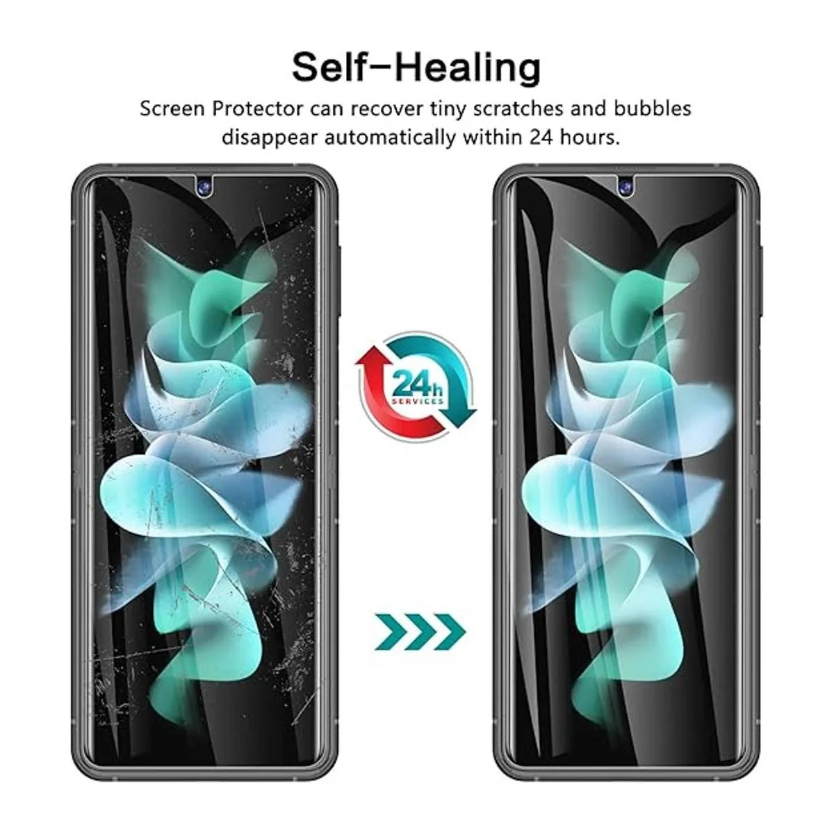 El paquete incluye: 3 protectores de pantalla para Samsung Galaxy Z Flip 4, 1 almohadilla de fijación antideslizante, 1 espátula y 3 kits de limpieza. El material de EPU es flexible y tiene una capacidad limitada de autorreparación, y pequeños arañazos, burbujas e imperfecciones en la película desaparecerán automáticamente en 24 horas