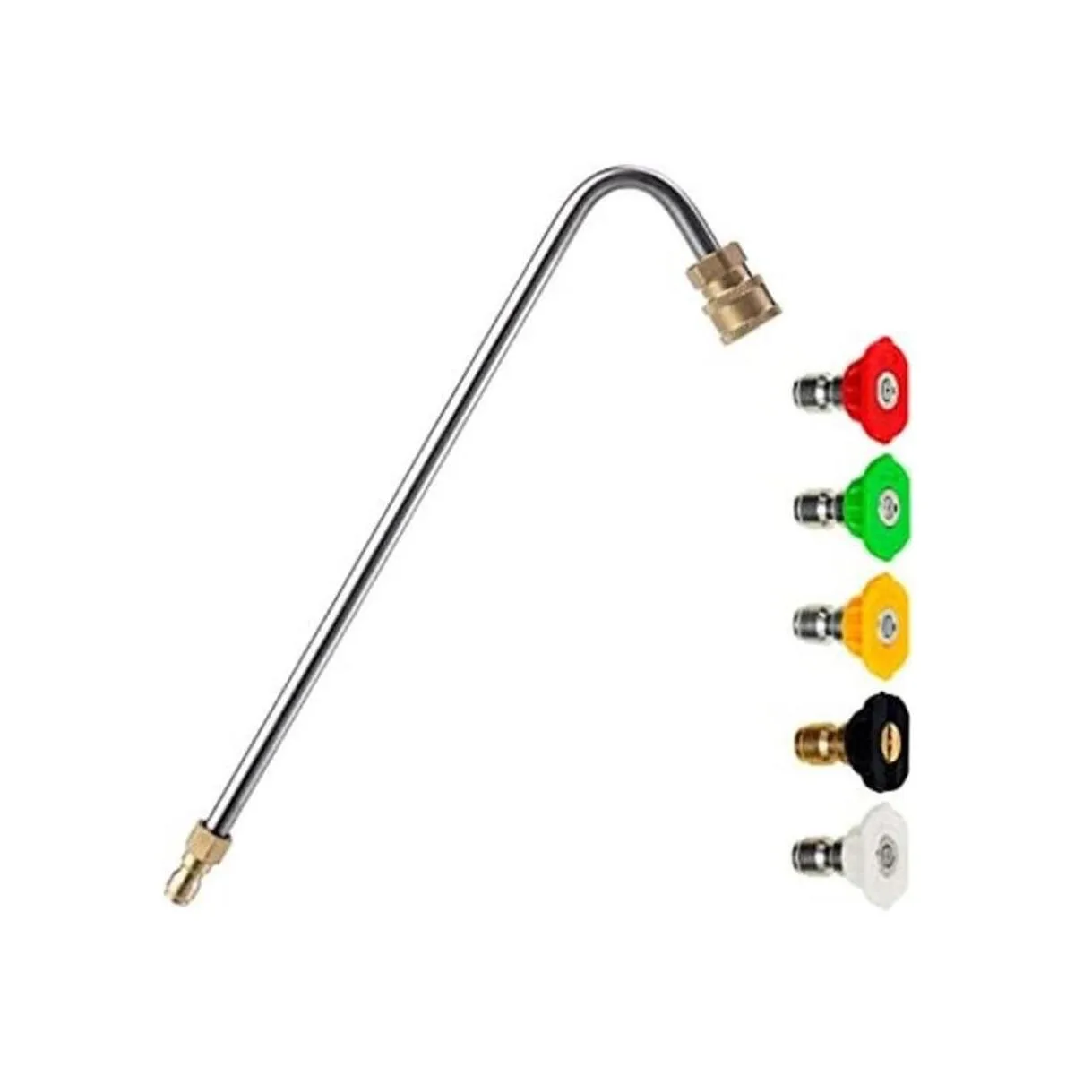 M MINGLE Accesorio limpiador de canalones de lavado a presión, varita de extensión en ángulo para limpieza de canalones, 5 puntas de boquilla, conexión rápida de 14 pulgadas, 13 pulgadas