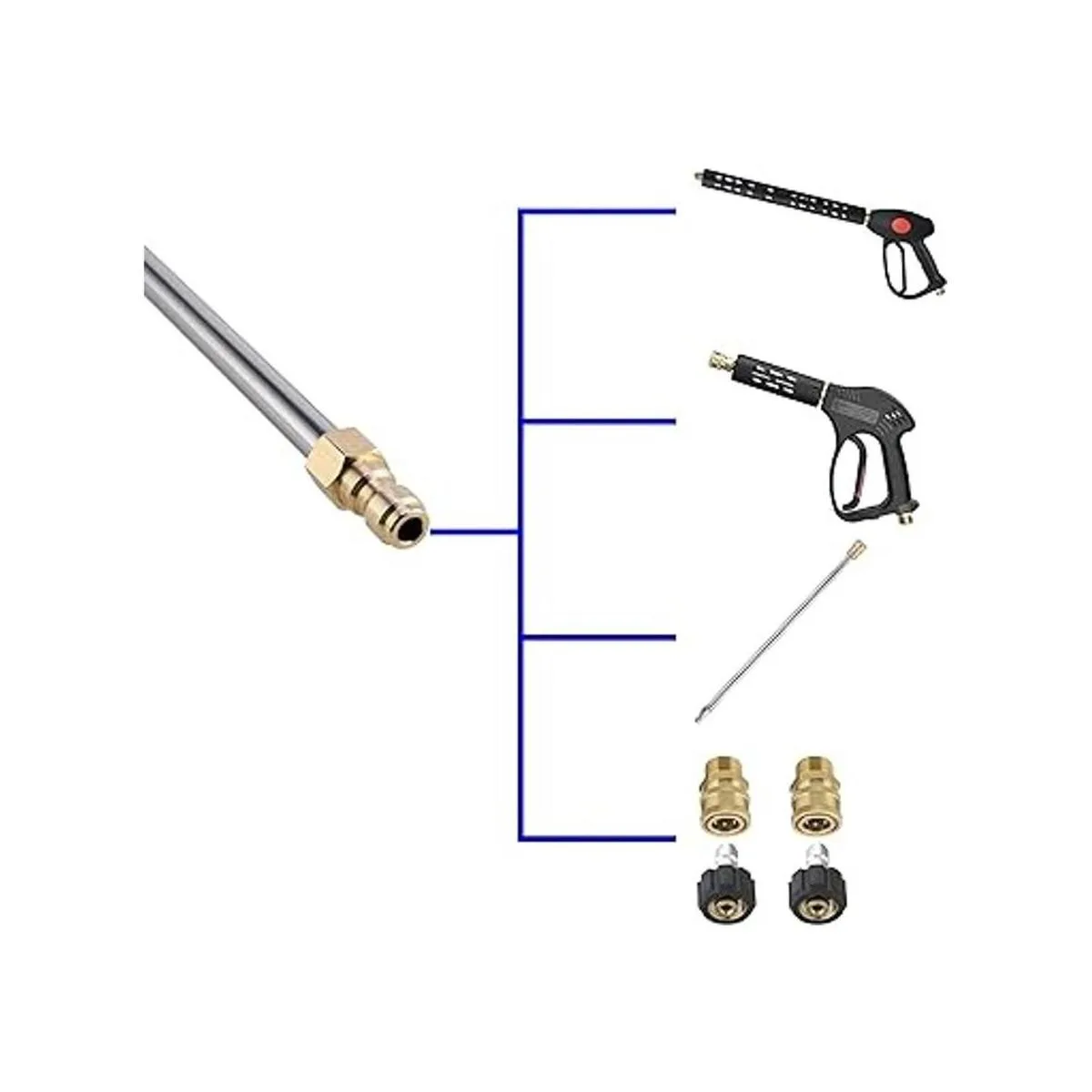 La varita de canalón de lavado a presión universal para lavadora eléctrica se utiliza para sacar las zonas fuera de alcance como acoplador pivotante, como canalón y chasis. Longitud: 13 pulgadas.