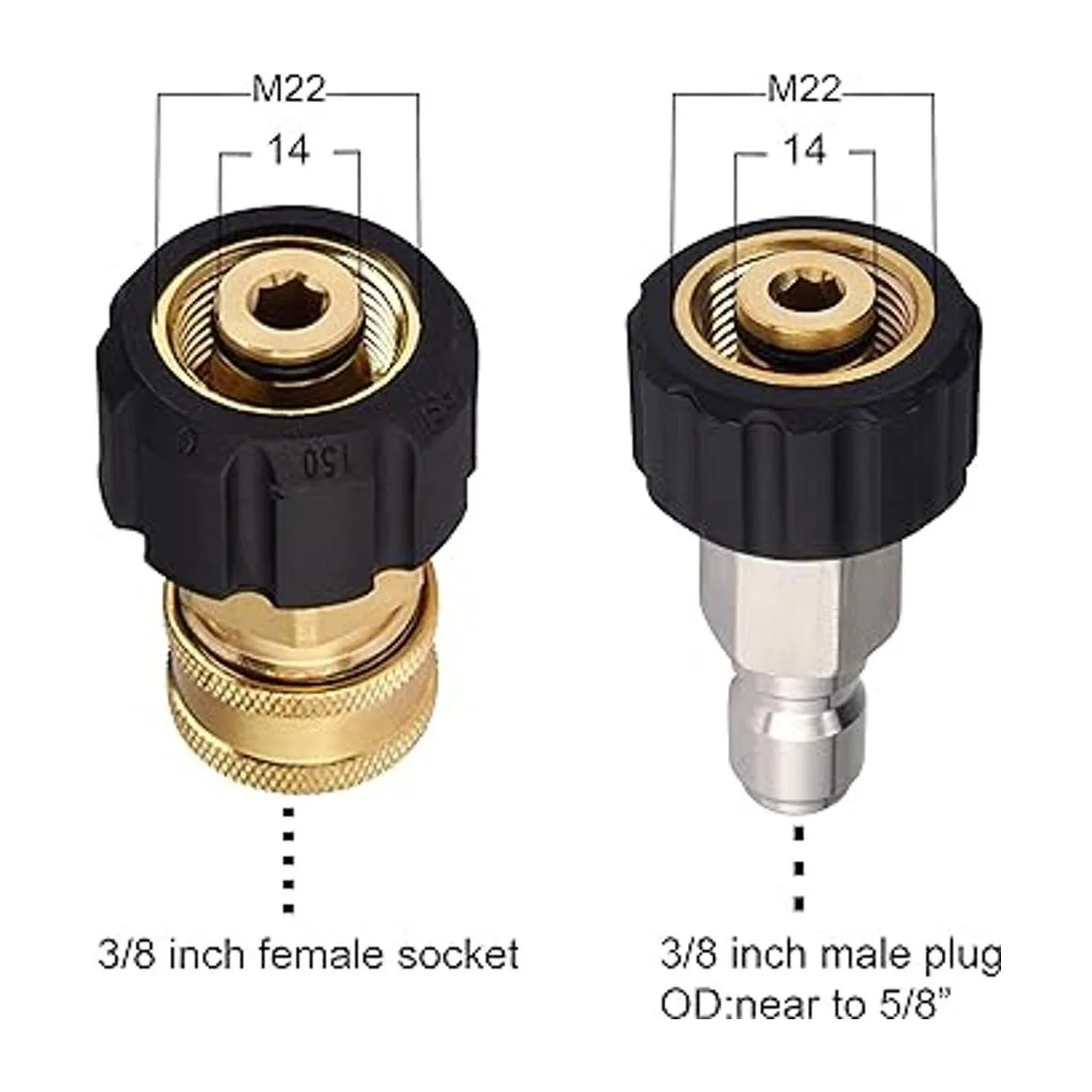 M MINGLE Juego de adaptador de manguera de lavado a presión, conexión rápida M22 a 38 para manguera de lavado eléctrico, 5000 PSI