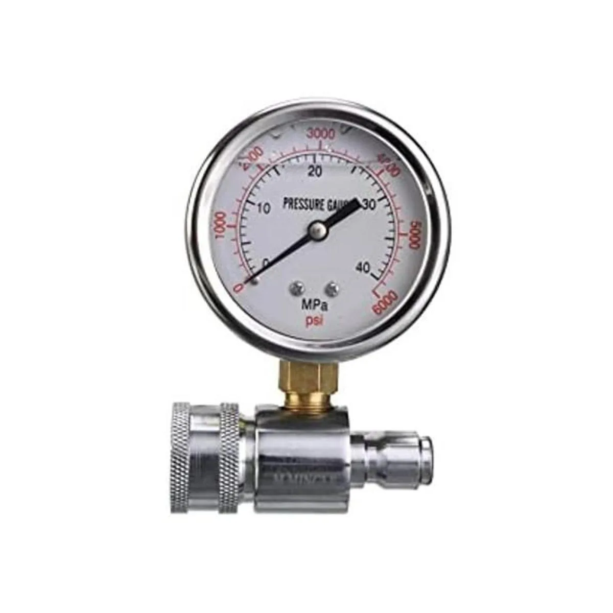 El medidor de presión para lavadora a presión es fácil de leer y se minimiza la vibración para lecturas precisas. La lectura del medidor de prueba de lavado a presión es de hasta 6000 PSI.