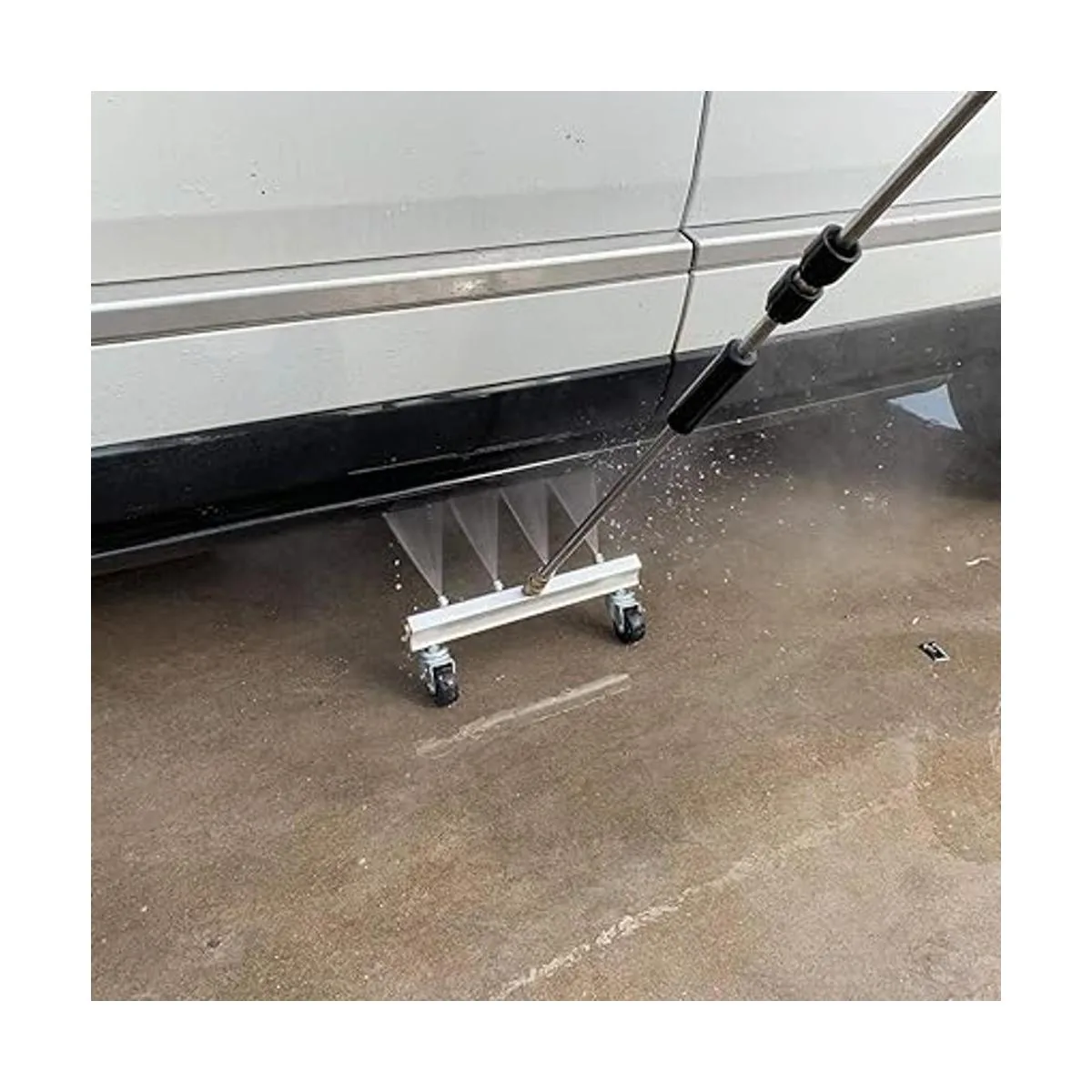 Fácil de limpiar y evitar que se arrastre debajo de un vehículo. Limpia la suciedad de la carretera, el aceite y los contaminantes de combustible debajo de coches, camiones, SUV, vehículos de tamaño comercial y remolques.