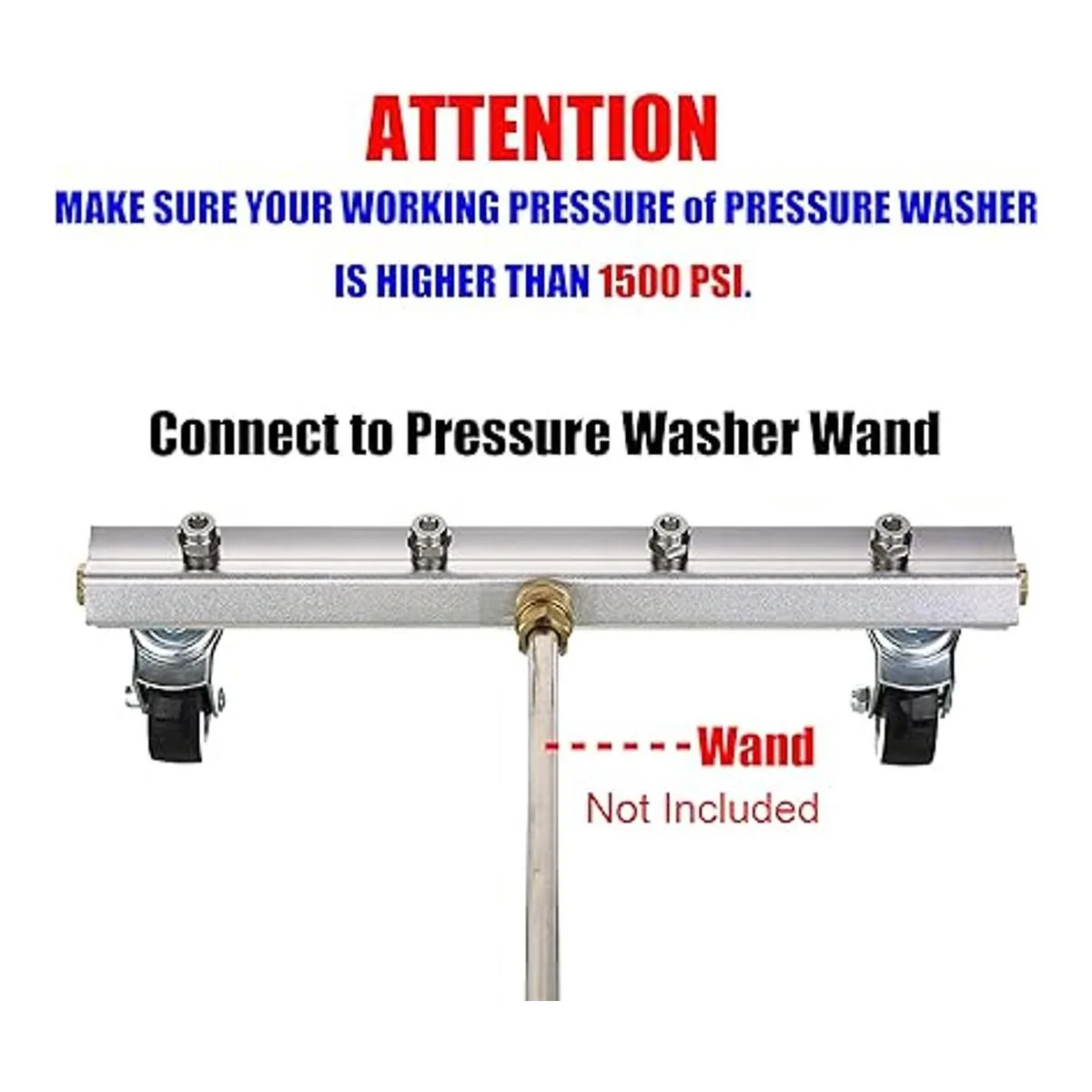 Atención: asegúrate de que tu lavadora a presión sea superior a 1500 PSI. Rango de presión: 1500 PSI a 4000 PSI. 2500 PSI o superior tendrán el mejor resultado.