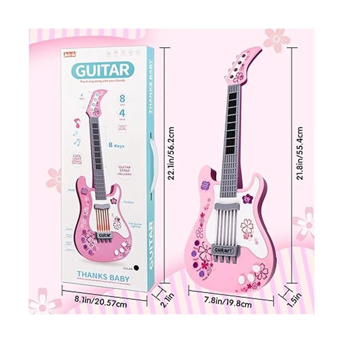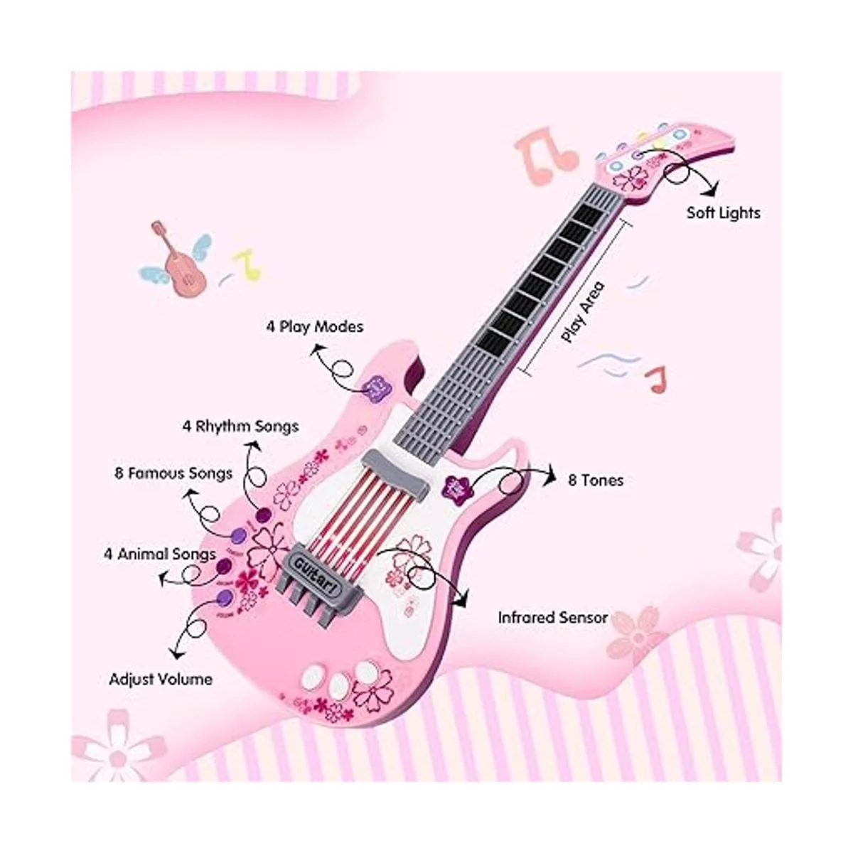 M SANMERSEN Guitarra infantil para niñas y niños, guitarra de juguete rosa, instrumentos musicales, regalo de cumpleaños, recuerdo de fiesta para niños