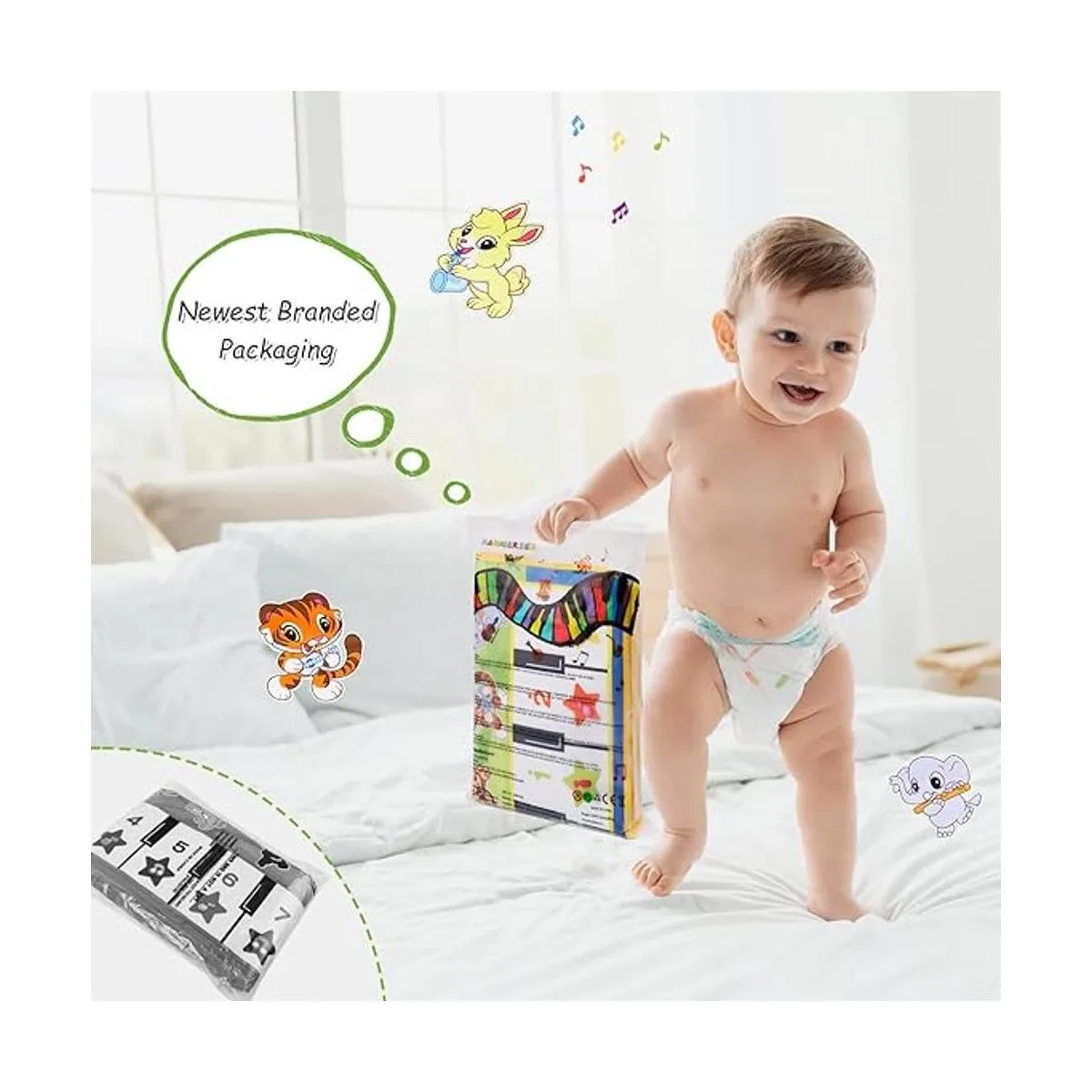 Material suave y plegable: la alfombrilla de piano se puede plegar, fácil de transportar y usar, un buen juguete musical para niños pequeños que tienen un picnic o camping. La alfombrilla para piano está hecha de tela suave no tejida, es un juguete musical seguro y multifuncional para niñas de 1, 2, 3 años.