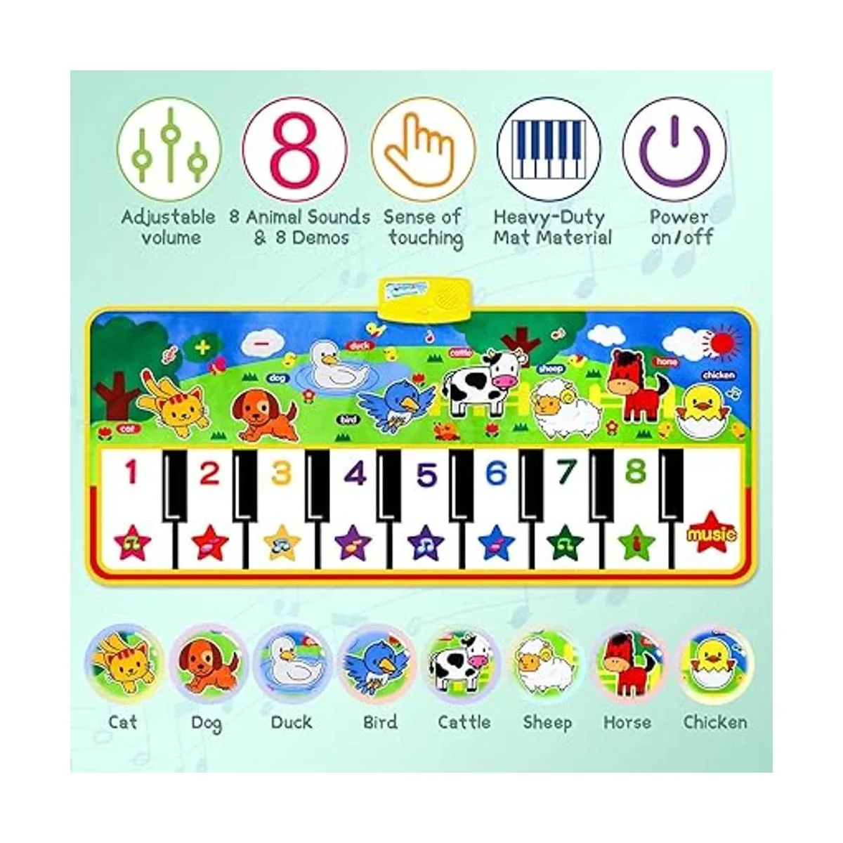M SANMERSEN Tapete para piano, 53 x 23 pulgadas, juguetes musicales para niños pequeños, tapete de juego táctil de piano con 8 sonidos de animales, tapete de baile con teclado de piano musical, juguetes educativos tempranos, regalo para niños y niñas de 1 a 5 años