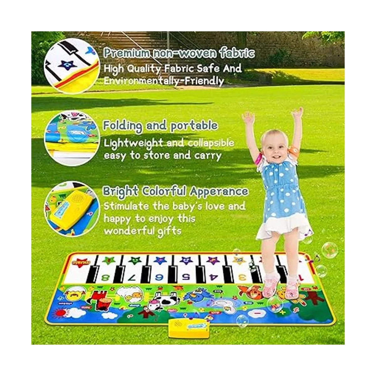Material antideslizante y seguro: este juguete musical está hecho de tela no tejida suave, insípida y no tóxica, absolutamente seguro para los niños. Y la alfombrilla musical para niños pequeños es agradable al tacto y suave, antideslizante y duradera, adecuada para que los niños gateen, caminen, corran y saltan, inofensiva para tus bebés y fácil de limpiar.