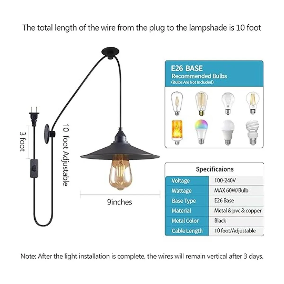 Instalación fácil y rápida: esta lámpara de suspensión se conecta al enchufe de la pared es muy fácil de instalar. Todas las piezas están incluidas, con prácticas instrucciones de instalación para una fácil instalación. Puedes ajustar el cable a la longitud que creas que funciona mejor para tu hogar, y funciona aún mejor con bombillas Edison retro.