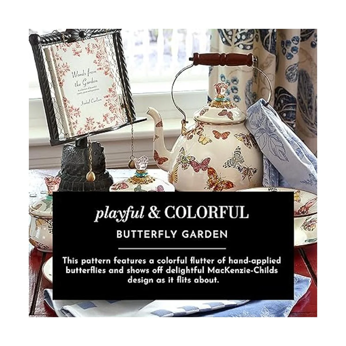 Accesorios de cocina: en MacKenzieChilds, creemos que los artículos diarios se pueden hacer extraordinarios. Disfruta de la magia de nuestra colección Butterfly Garden en platos para servir, platos de ensalada, tazas de café y la exclusiva tetera MacKenzieChilds.