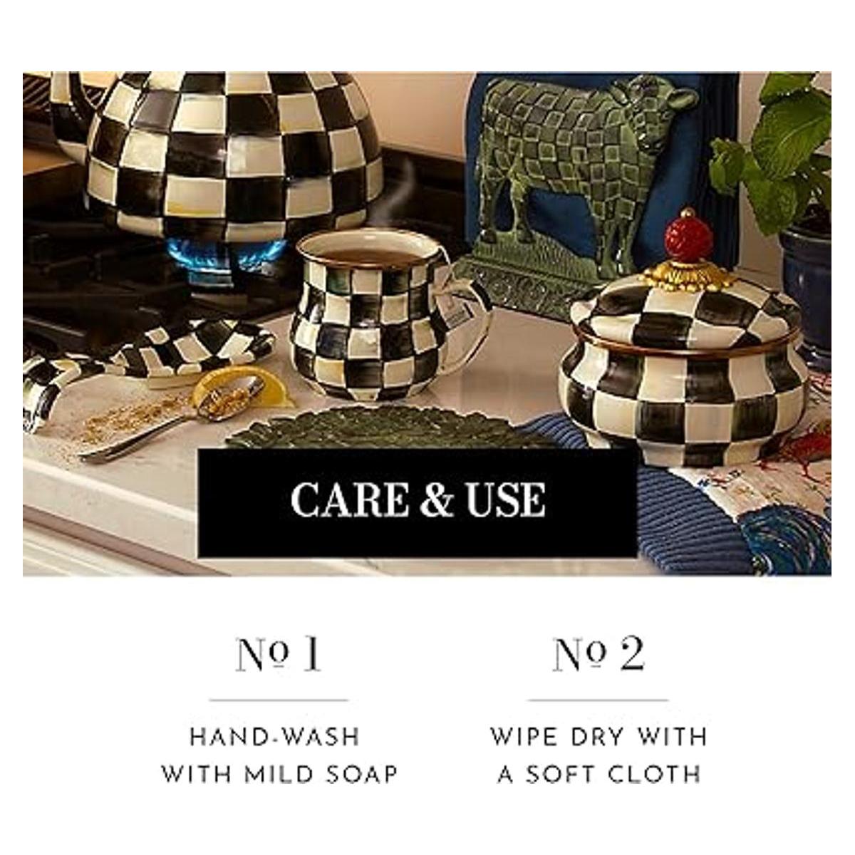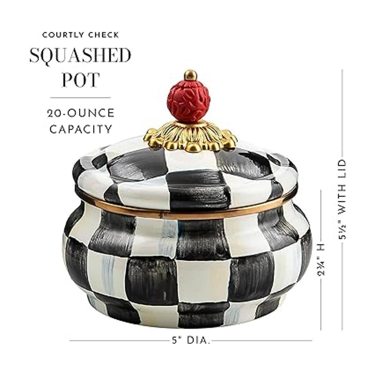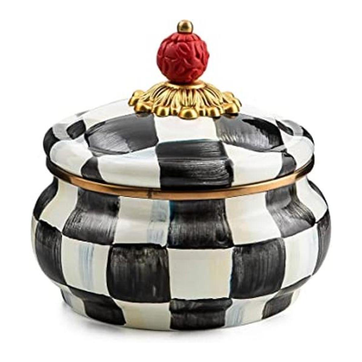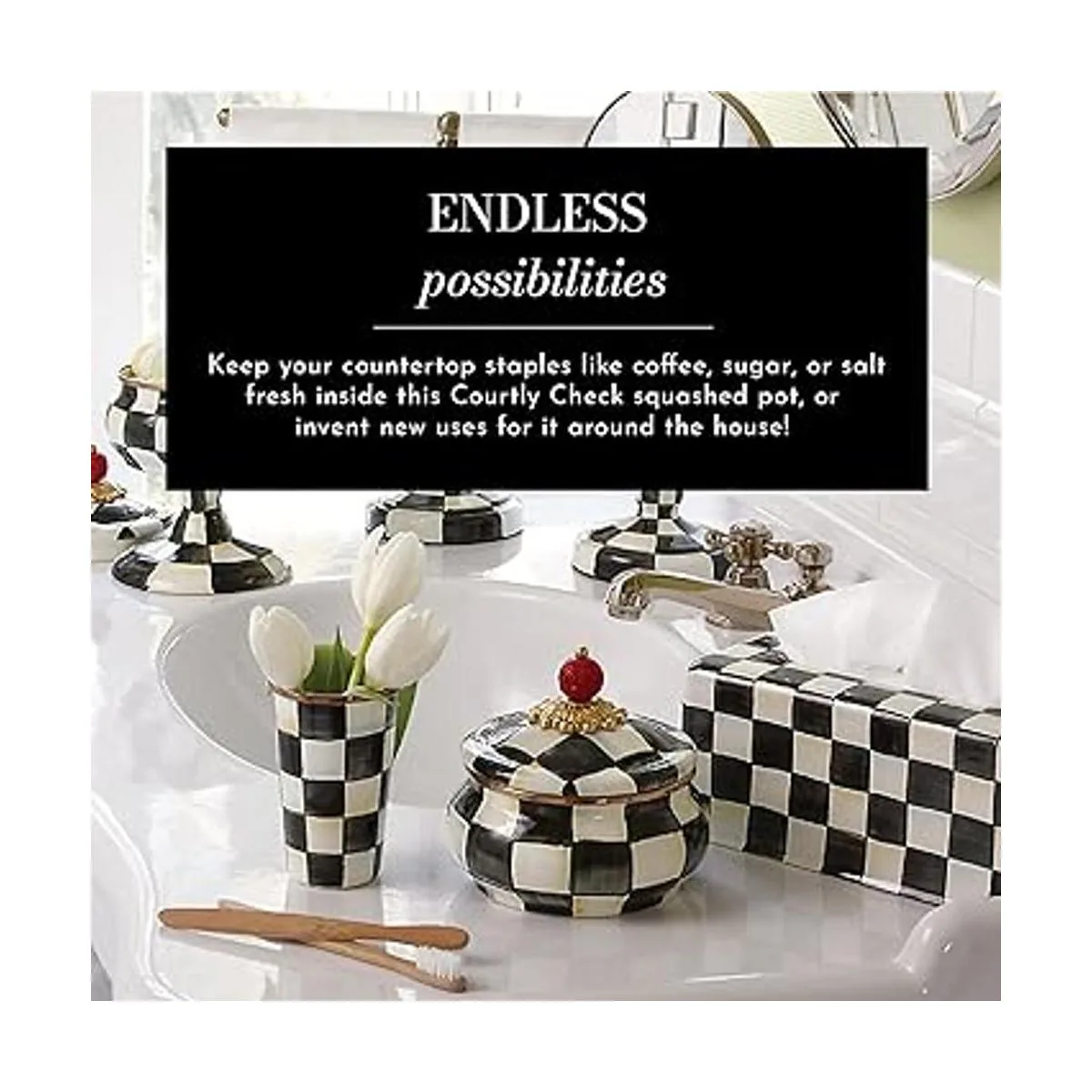 MacKenzieChilds Maceta aplastada a cuadros cortes, bonito almacenamiento de té, recipiente de harina o azúcar