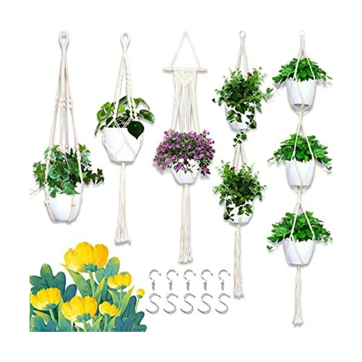 Macramé Colgador de plantas para colgar en interiores y exteriores, con 5 ganchos para plantas pequeñas y macetas de algodón, hecho a mano, para decoración del hogar, 5 unidades