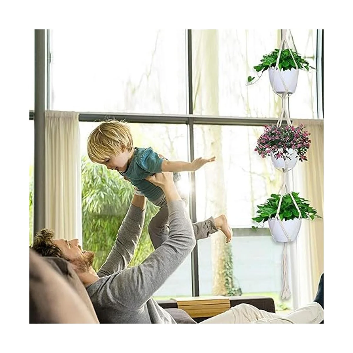 Material natural: el juego de colgadores de macramé para plantas está hecho de cordón de algodón puro de alta calidad, natural, ecológico, suave, resistente, duradero y lavable. El colgador de plantas de interior es muy adecuado para muchas formas y tamaños de macetas, puede adaptarse a macetas de ancho de 12 a 7.9 in. Al tener este colgador de plantas alegrará tu maceta y te traerá una experiencia visual más única.