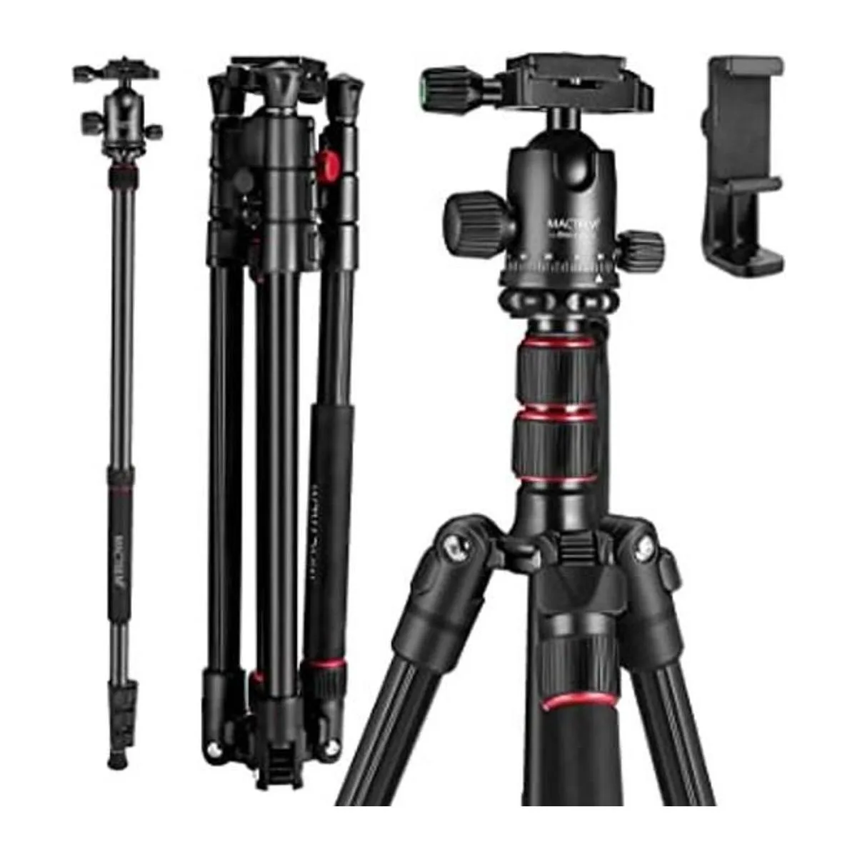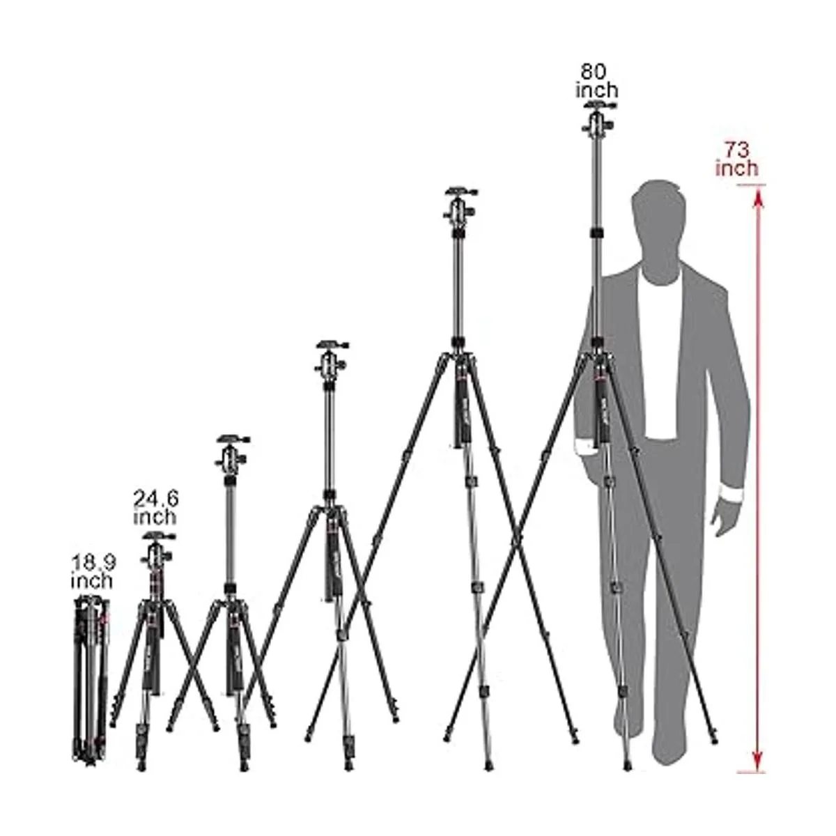MACTREM Trípode de cámara de 80 pulgadas, trípode DSLR para viajes, cabeza de bola de aluminio ligero de 360 grados, trípode profesional, monopie con bolsa de transporte, soporte para teléfono, 18.5 a 80 pulgadas, carga de 33 libras 80 pulgadas
