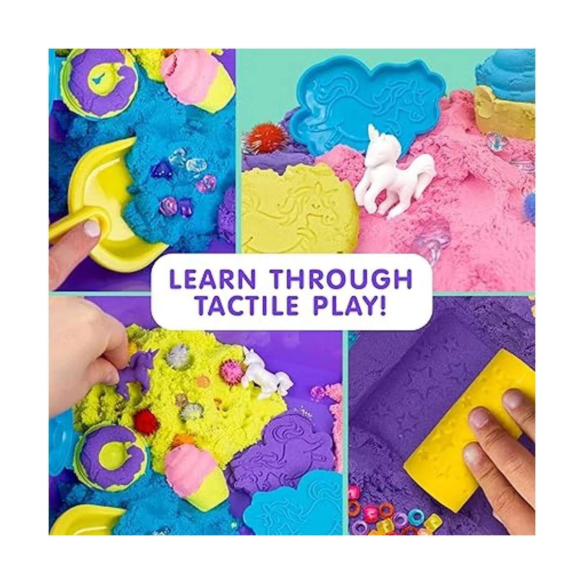 Descubre los beneficios del juego de pequeño mundo: da vida a unicornios, cupcakes y todo tipo de dulces empacando arena dentro de los moldes o utilizando los rodillos de impresión para crear senderos de arcoíris