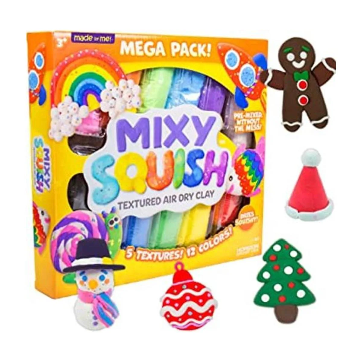 Made By Me Mixy Squish Rainbow Mega Pack de Horizon Group USA, incluye 12 onzas de arcilla seca al aire prehecha, juego sensorial, 12 colores, 5 texturas crujientes, suaves, se seca y suave