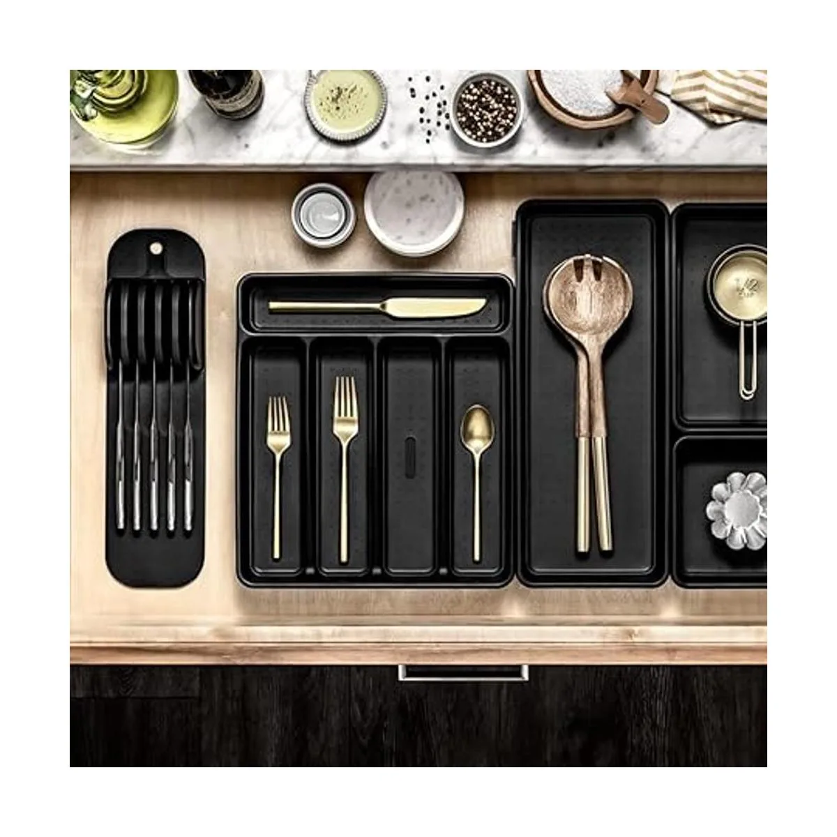 madesmart Antimicrobial Classic Bandeja de cubiertos pequeña de agarre suave, cajón de cocina antideslizante, 5 compartimentos, organización multiusos para el hogar, certificado EPA, carbono